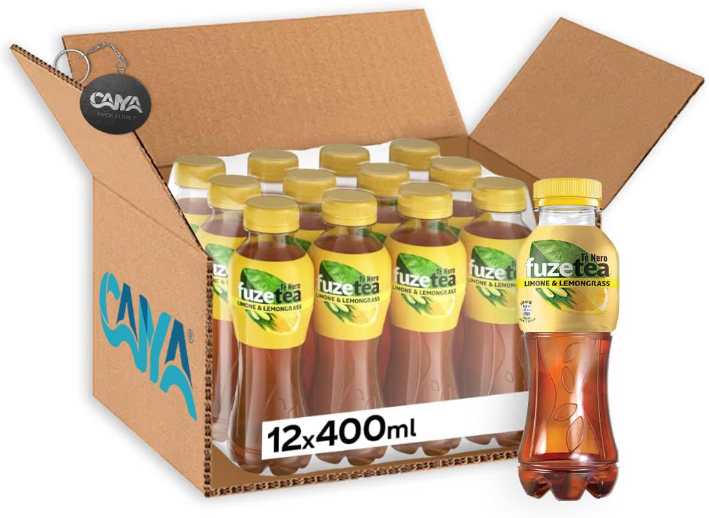12X Fuzetea Té Nero al Gusto Limone con una Nota di Lemongrass Bottiglia Pet 400ml- Drink Summer 2023 [CAIYA® BOX da 12 Confezioni]