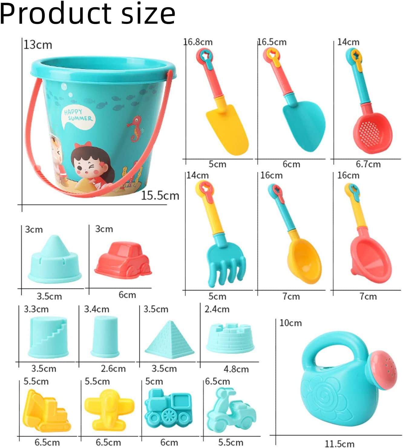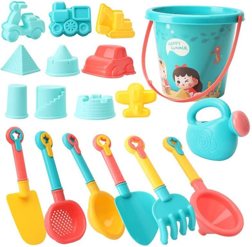 - 🦀 [Confezione da 18 pezzi]: il set di 18 giochi di sabbia include 1 secchio, 1 annaffiatoio, 5 stampi di sabbia per castelli da spiaggia, 5 stampi di sabbia per modellini di auto, 2 pale, 1 rastrello e 3 scolapasta.