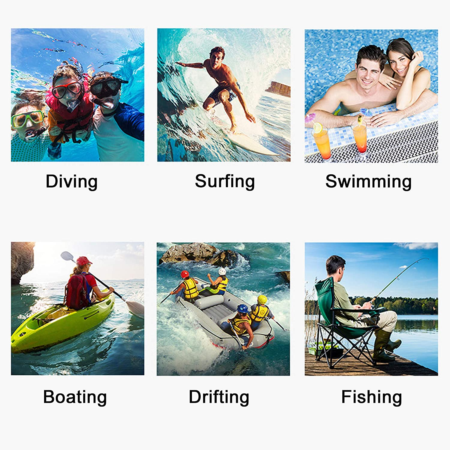 E l'accessorio perfetto per attivita all'aria aperta, non importa dove andare, come il canottaggio, snorkeling, escursioni a piedi 0 in campeggio 0 in qualsiasi posto vicino al'acqua.