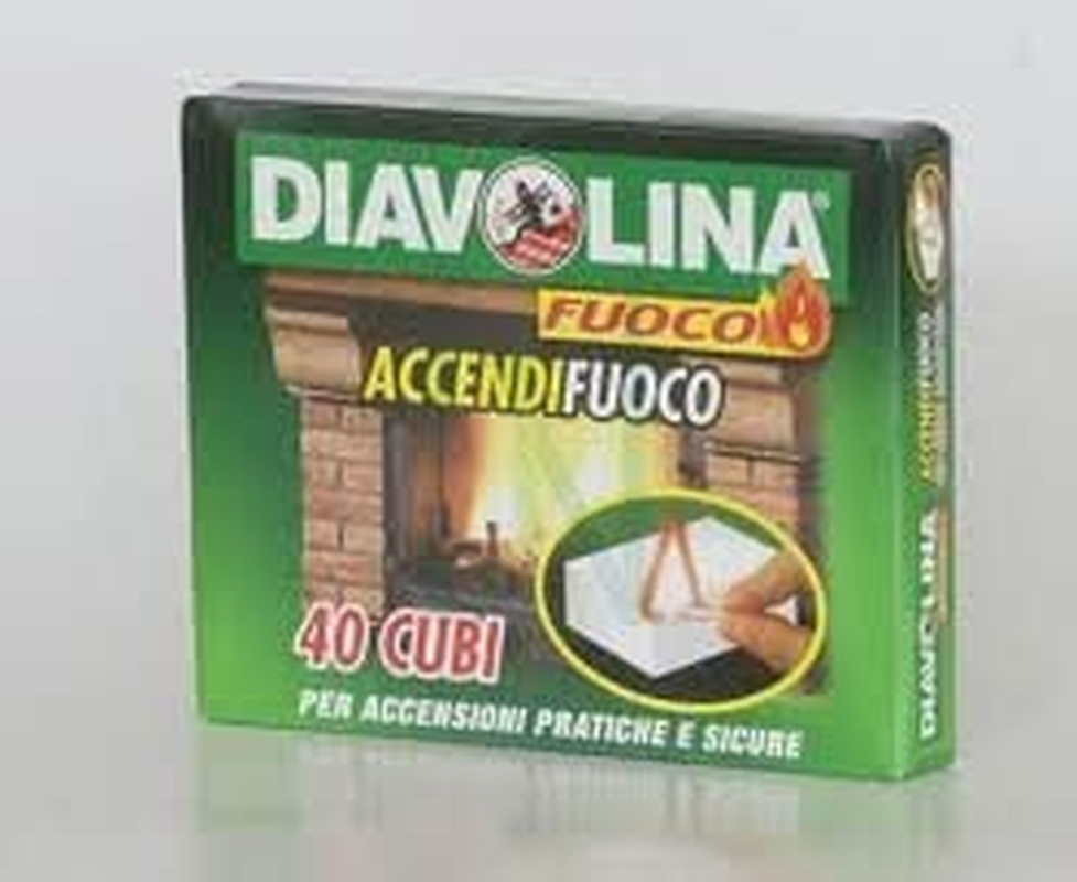 DIAVOLINA FEUERANZÜNDER für Kamine und Öfen mit festen Brennstoffen. Packung mit 40 Würfeln. 24 PACKUNGEN à 40 WÜRFEL