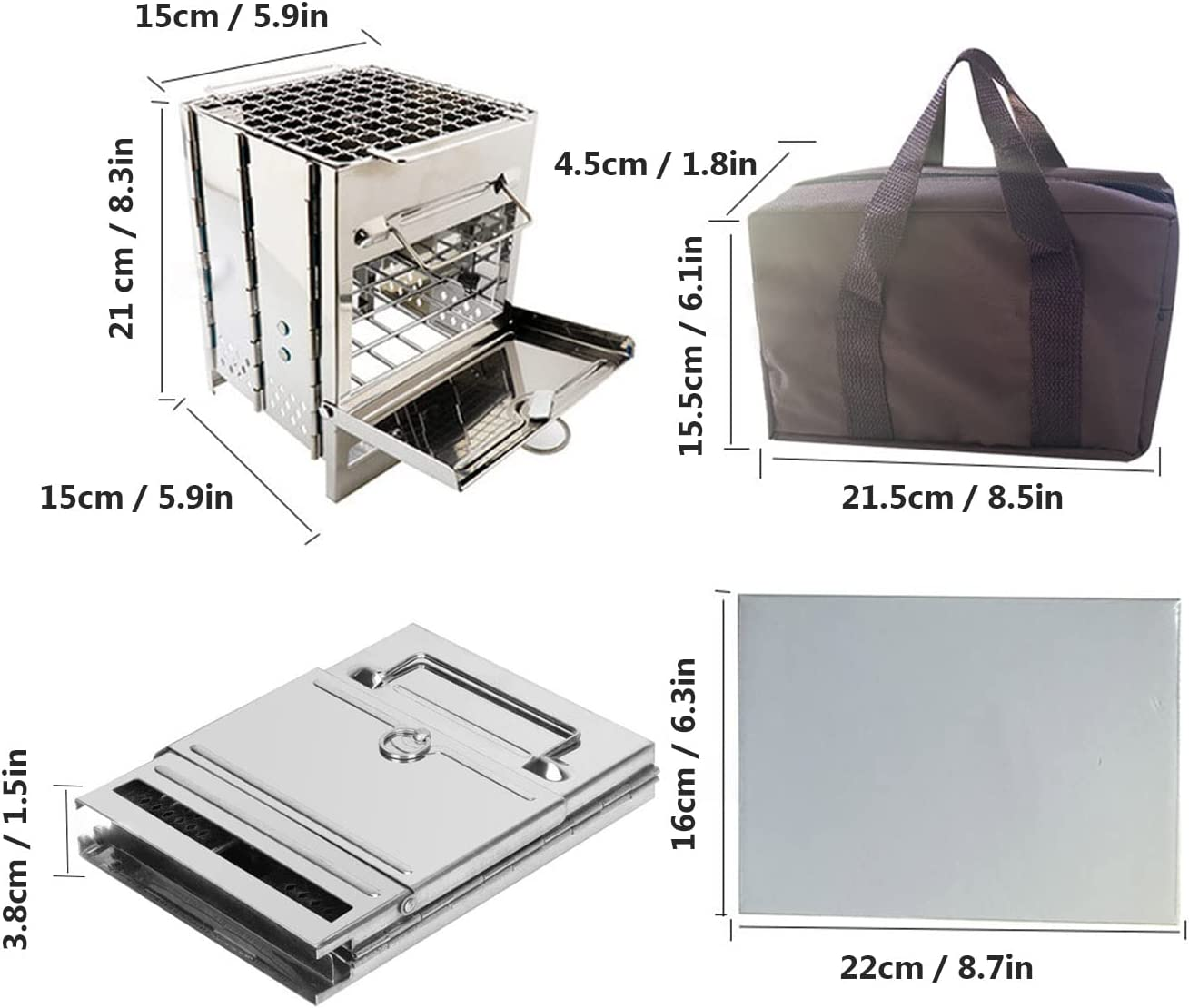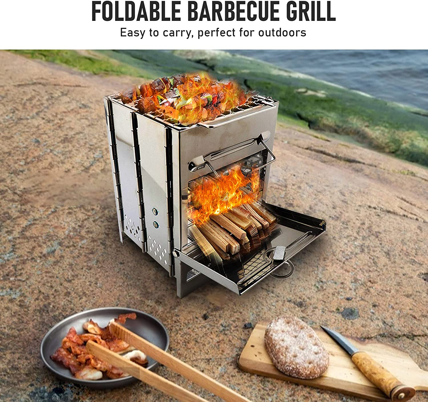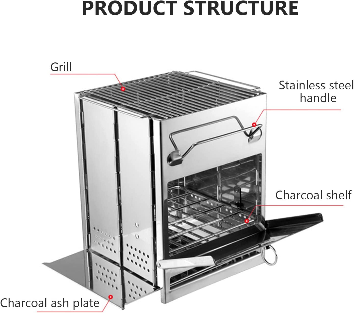 3 IN 1 Petit Fourneau De Camping Pliant Bois,Poêle à Bois en Acier Inoxydable,Fo