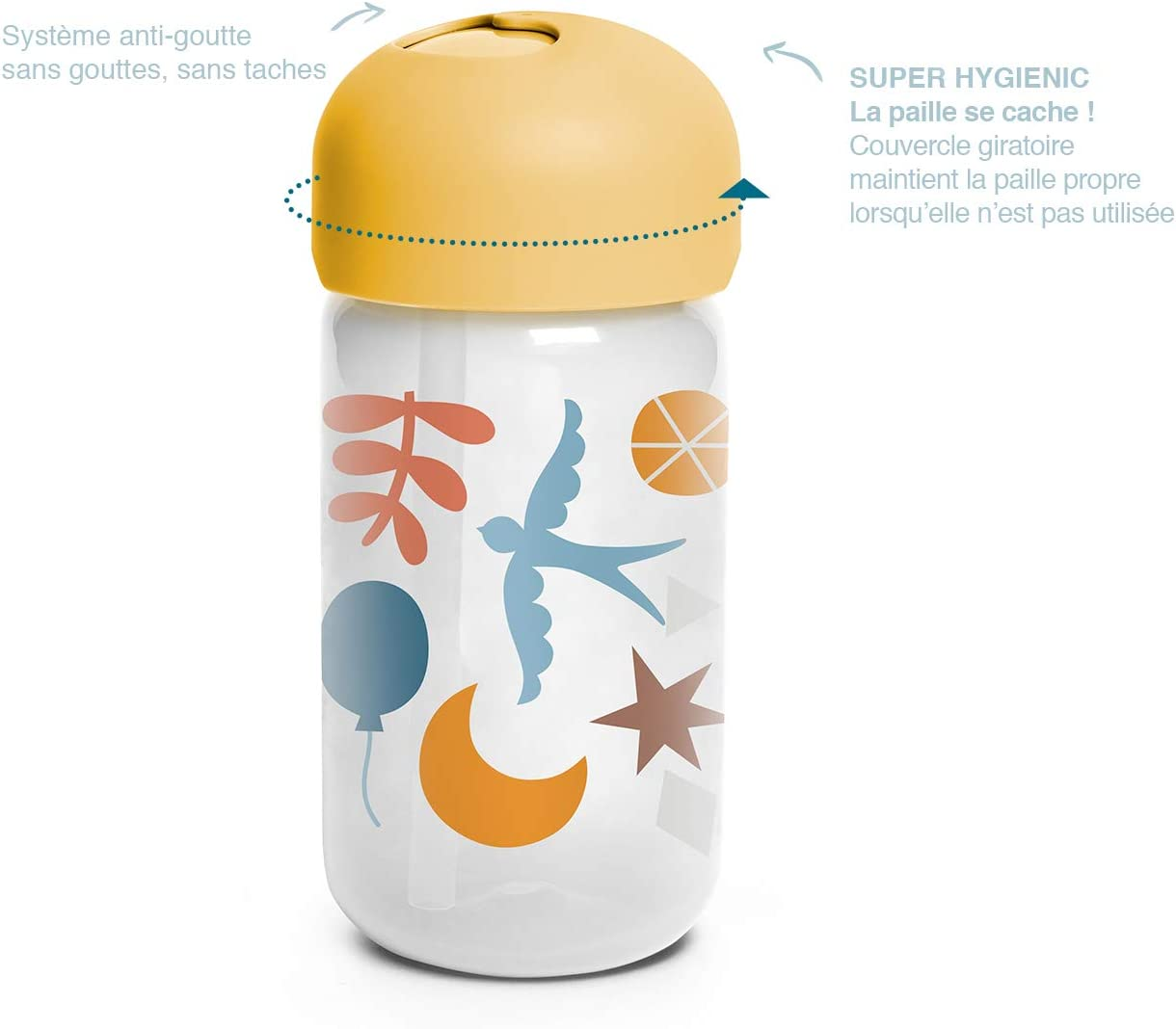 - Verre pour l'apprentissage, idéal pour les premières fois que l'enfant boit seul avec une paille souple