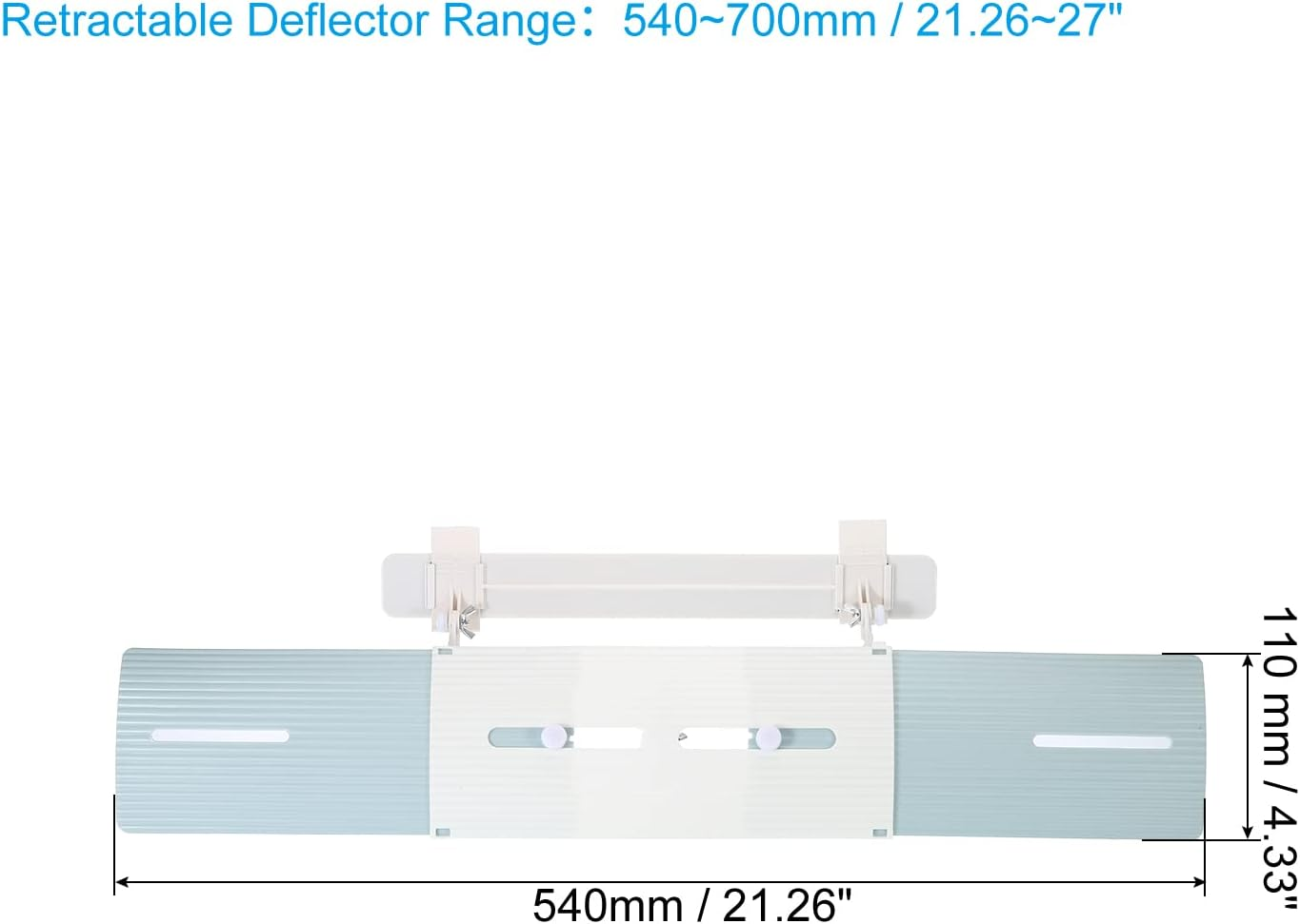 - Nome del prodotto: Deflettore per condizionatore d'aria retrattile; Regolazione multi-angolo: Su/Giù, Destra/Inclinazione Rotazione; Colore: Bianco, Blu; Materiale: ABS Plastica; Dimensioni: 540 x 110 mm / 21.26 x 4.33" (Lunghezza * Larghezza)Larghezza regolabile:540~700mm / 21.26~27.56"; Contenuto della confezione: 1 x Deflettore per condizionatore d'aria