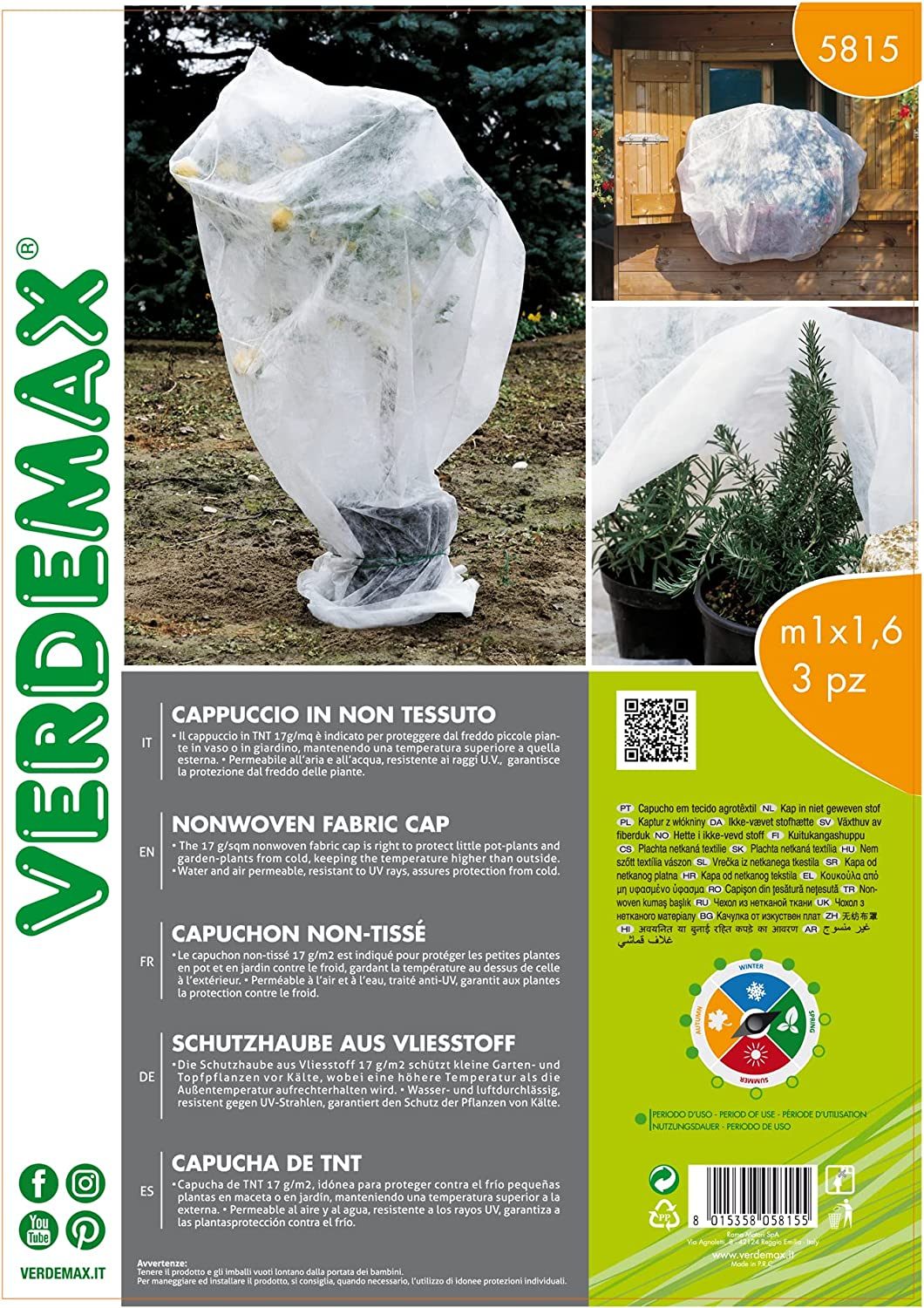 Verdemax a été fondée dans les années 1980 et est aujourd'hui devenue l'une des marques d'articles de jardin de la meilleure qualité, même au-delà des frontières italiennes. Il est idéal pour protéger du froid les petites plantes en pot ou les plantes de jardin, en maintenant une température plus chaude qu'à l'extérieur. Perméable à l'air et à l'eau. Respirant, il évite la formation de condensation tout en maintenant le bon taux d'humidité. Fabriqué en polypropylène résistant et très léger. Résistant aux UV 17 g/m2. Il mesure 1,6 m de long et 1 m de haut. Couleur blanche. Le paquet Verdemax contient 3 bonnets non tissés