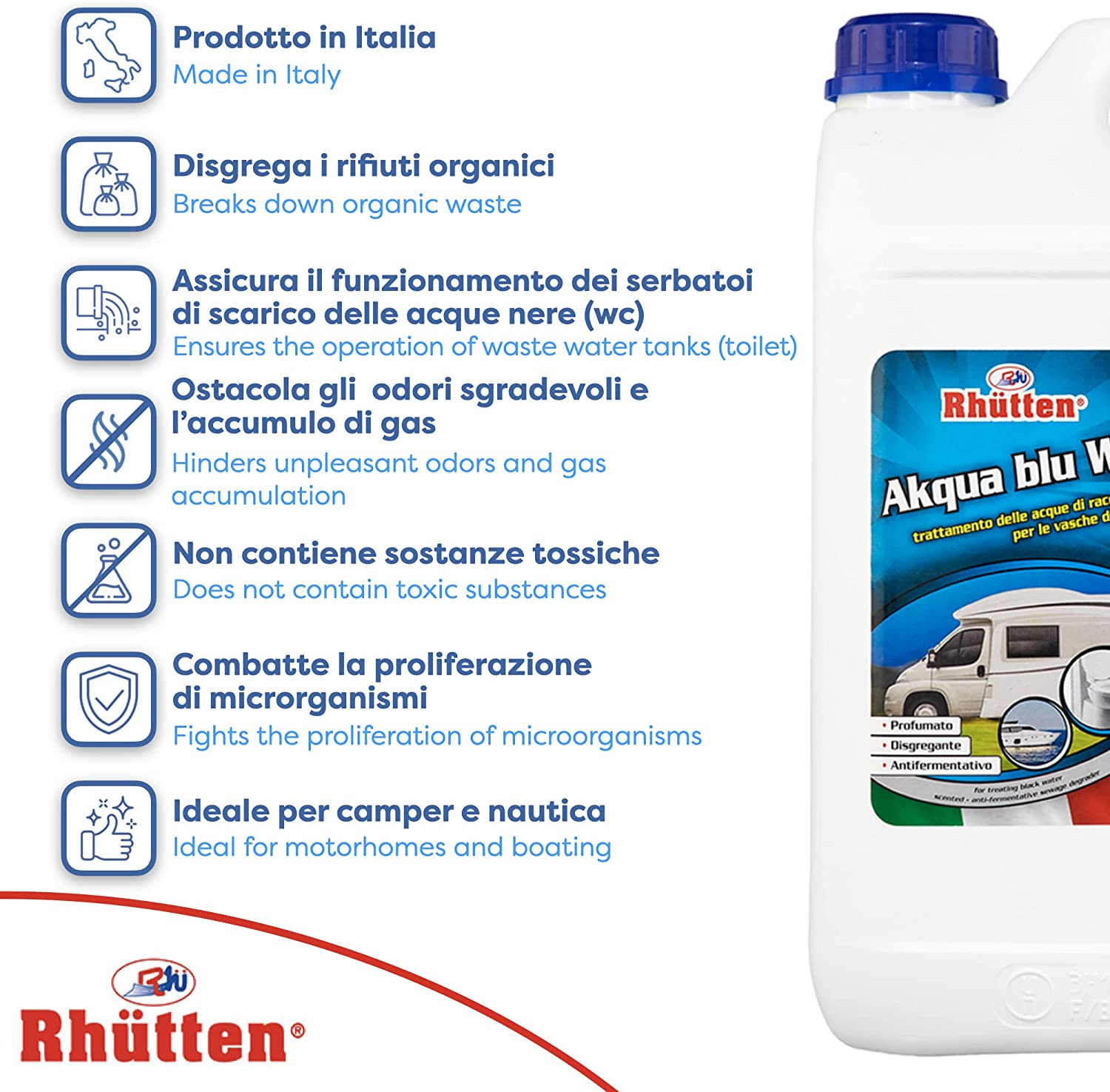DescrizioneLiquido chimico specifico per il trattamento delle acque nere derivanti dalle toilette di mezzi di trasporto come roulotte, camper, imbarcazioni, autobus, ecc. La sua azione disgregante nei confronti dei rifiuti organici assicura un efficiente funzionamento dei serbatoi di scarico. Contiene speciali principi attivi che combattono la proliferazione dei microrganismi, ostacolano lo svilupparsi di odori sgradevoli e l’accumulo di gas, rilasciando nel serbatoio una profumazione intensa e persistente. Non contiene sostanze tossiche come formaldeide, fenoli o derivati di metalli pesanti. | Specifiche2 formati