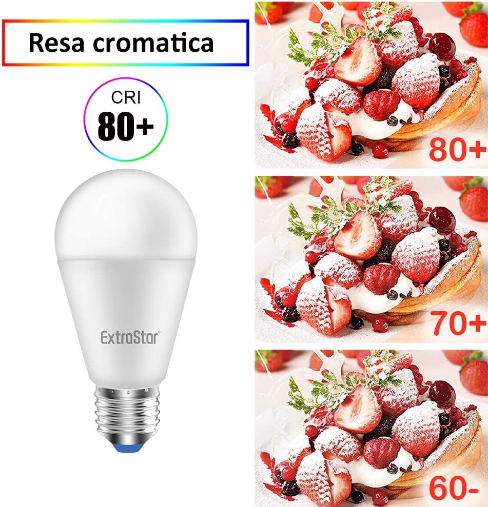 Lumière confortableAllumage instantané, pas de mouvement ni de lumières stroboscopiques. L’aspect dur n’empêche pas la fatigue oculaire. | A faible consommationDurée de vie extrêmement longue (environ 25 000 heures, 3 heures par jour), jusqu'à 90 % d'économie d'énergie, non seulement vous aurez moins d'ampoules à changer, mais vous économiserez également sur votre facture d'électricité. | Indice de rendu des couleurs élevéLe CRI des ampoules LED EXTRASTAR est toujours supérieur à 80, proche de la valeur de la lumière du soleil, et reflète les couleurs de manière réaliste et naturelle. |