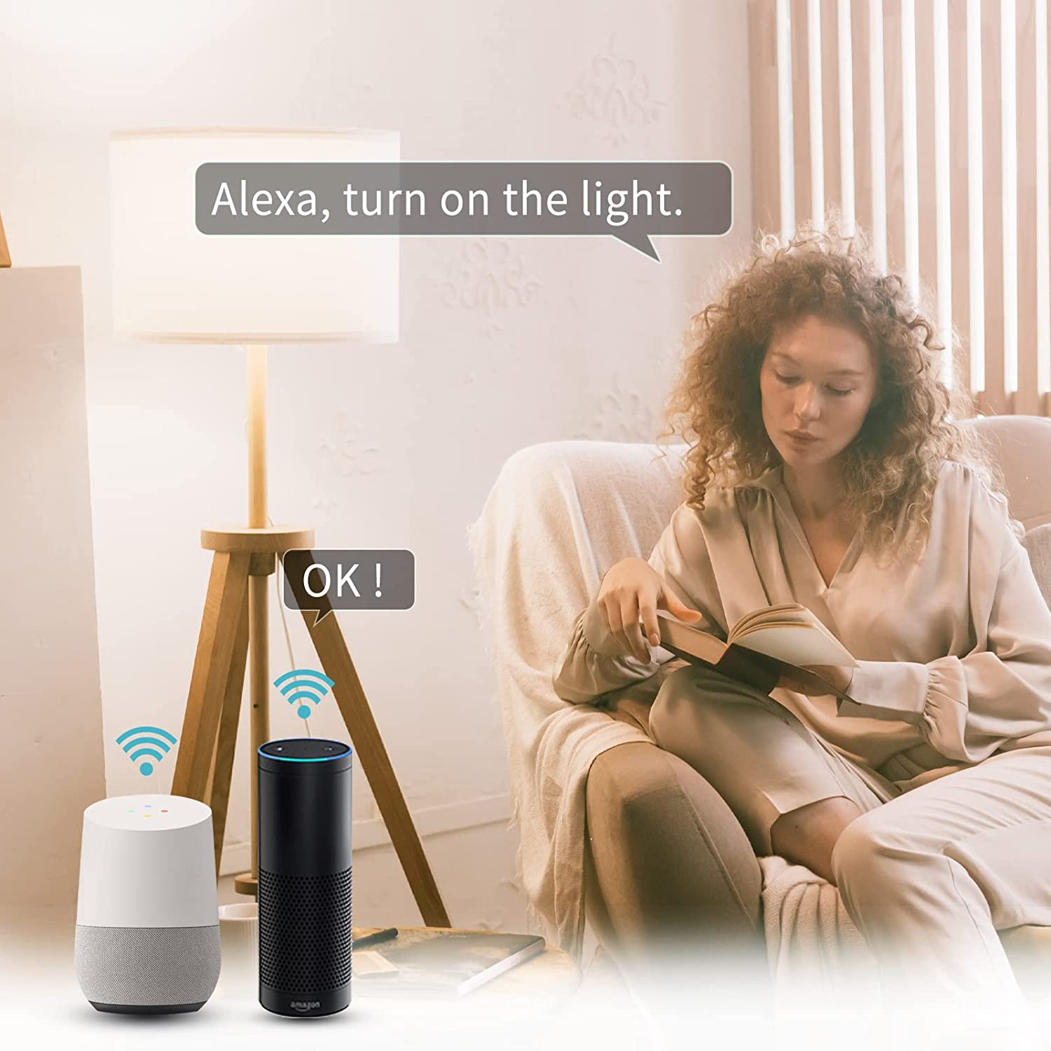- 【COMMANDE VOCALE】 L'ampoule intelligente WiFi fonctionne avec n'importe quel routeur WiFi, aucun hub nécessaire, facile à installer. Commande vocale facile avec toutes les ampoules intelligentes grâce à l'intégration avec Amazon Alexa ou Google Home. Cela inclut des commandes telles que l’allumage et l’extinction des lumières ou l’atténuation/l’éclairage des lumières. Par exemple, vous pouvez dire : « Alexa, allume les lumières » ou « Ok Google, allume les lumières ».