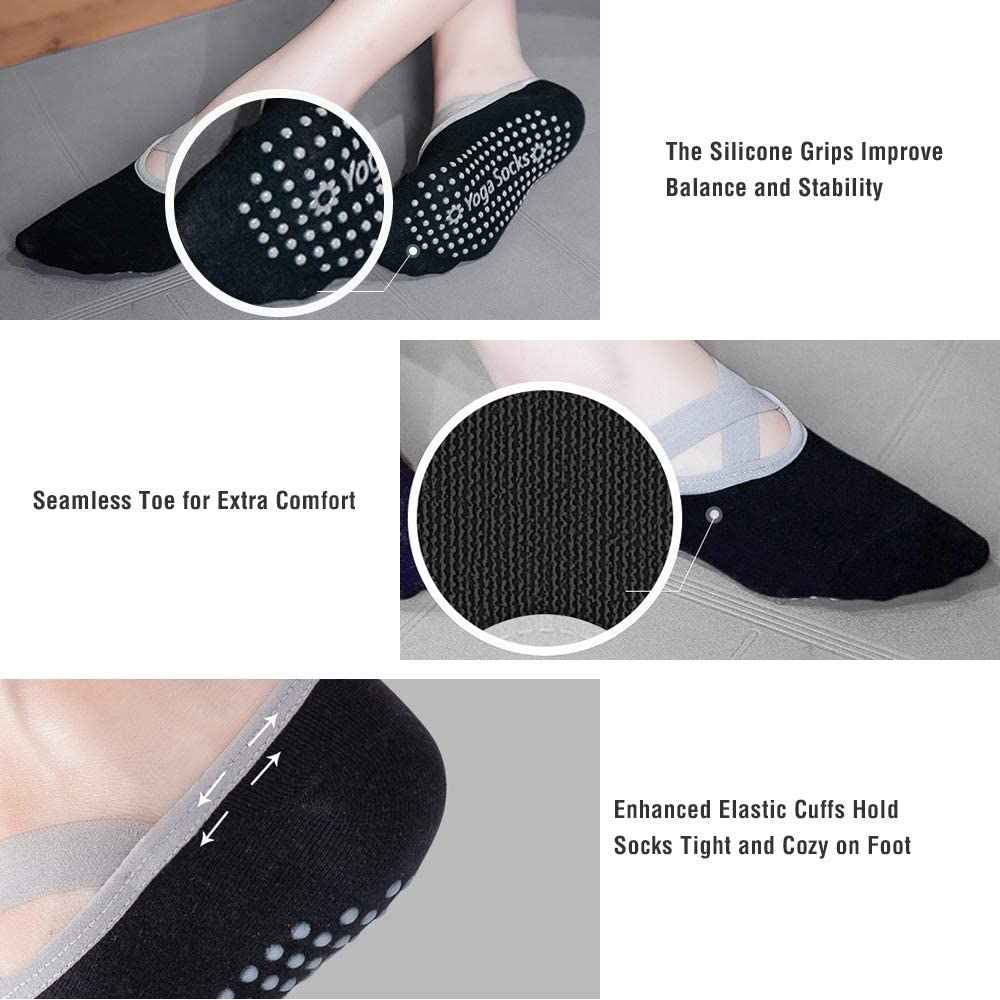 • 2 Paia di Calze da Yoga: Le 2 paia di calze da yoga sono disponibili in 2 colori: nero e grigio. La taglia unica si adatta alla maggior parte delle misure di scarpe da donna: UK 3-9 | 35-41 EUR. Le 2 paia di calzini sono ideali per pilates, yoga, barre, balletti, fitness, allenamenti a piedi nudi, trampolino, bikram, palestra o danza.