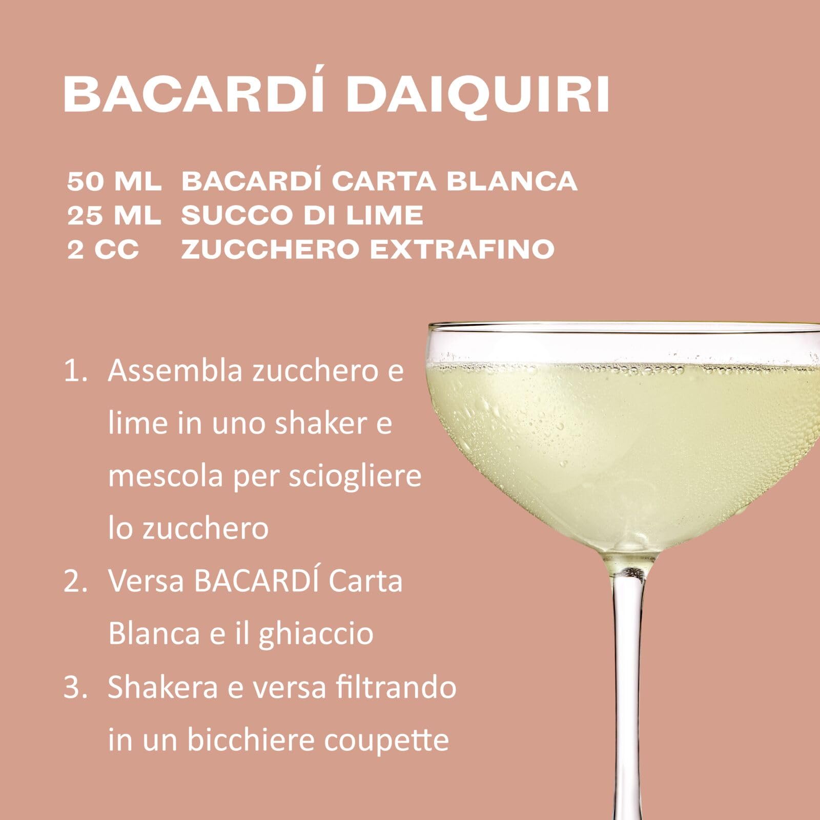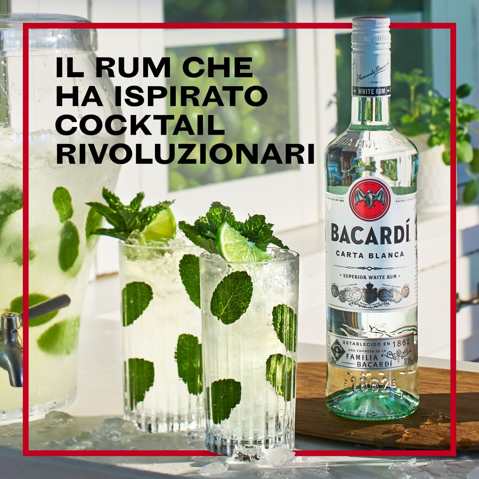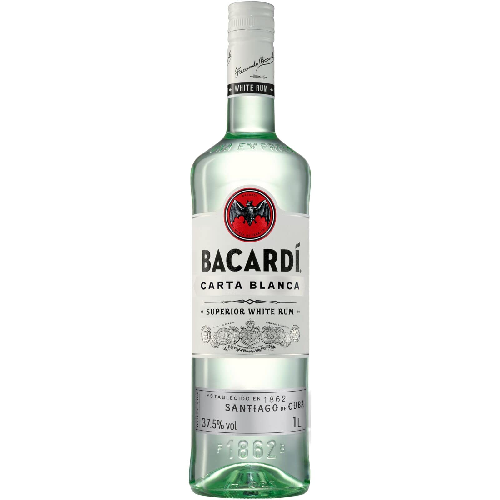 BACARDÍ Carta Blanca White Rum, iconico rum bianco dei Caraibi, ideale per i cocktail, Vol. 37,5%, 100 cl / 1 L