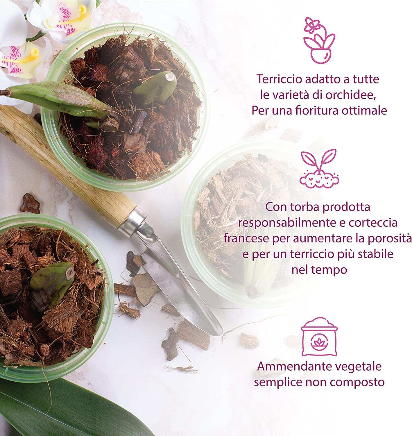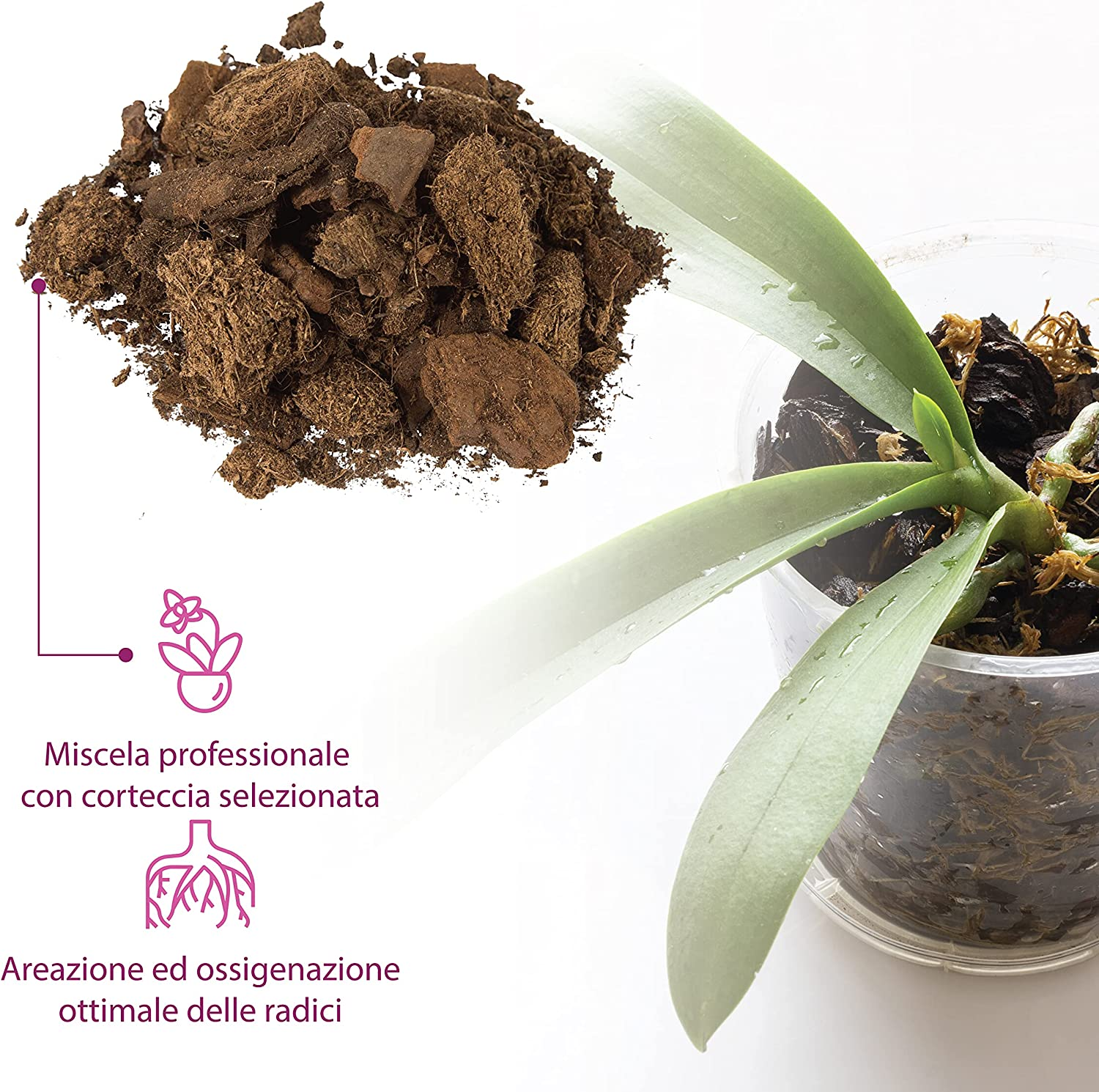 - PROFESSIONELLE MISCHUNG – Substrat mit Rinde, speziell ausgewählt für alle Arten von Orchideen.