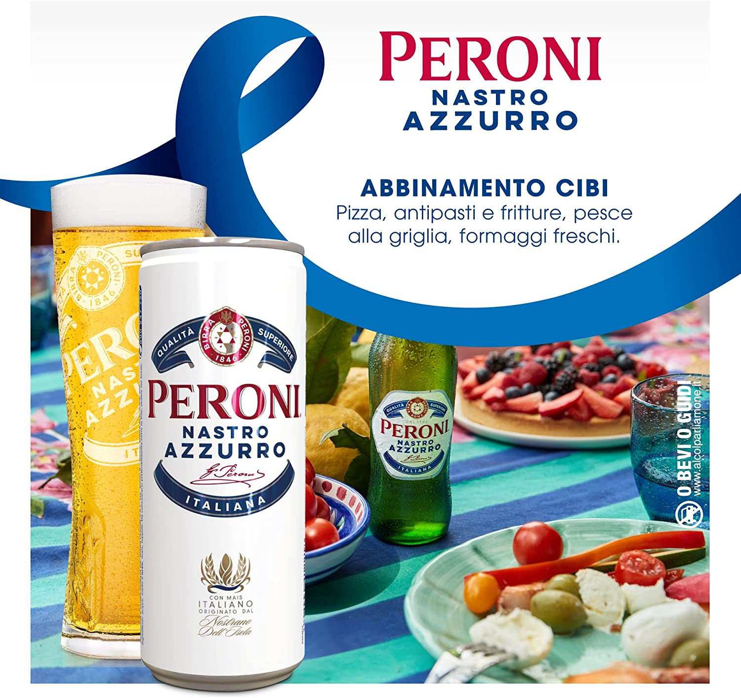 - IDÉAL AVEC: Peroni Nastro Azzurro au Mais Nostrano est la bière idéale pour accompagner les pizzas, les apéritifs et les fritures, le poisson grillé ou les fromages frais