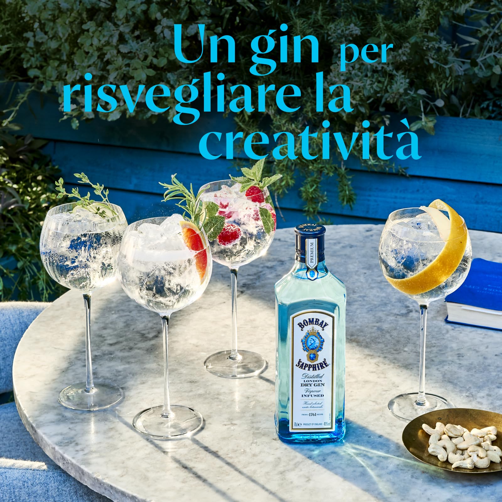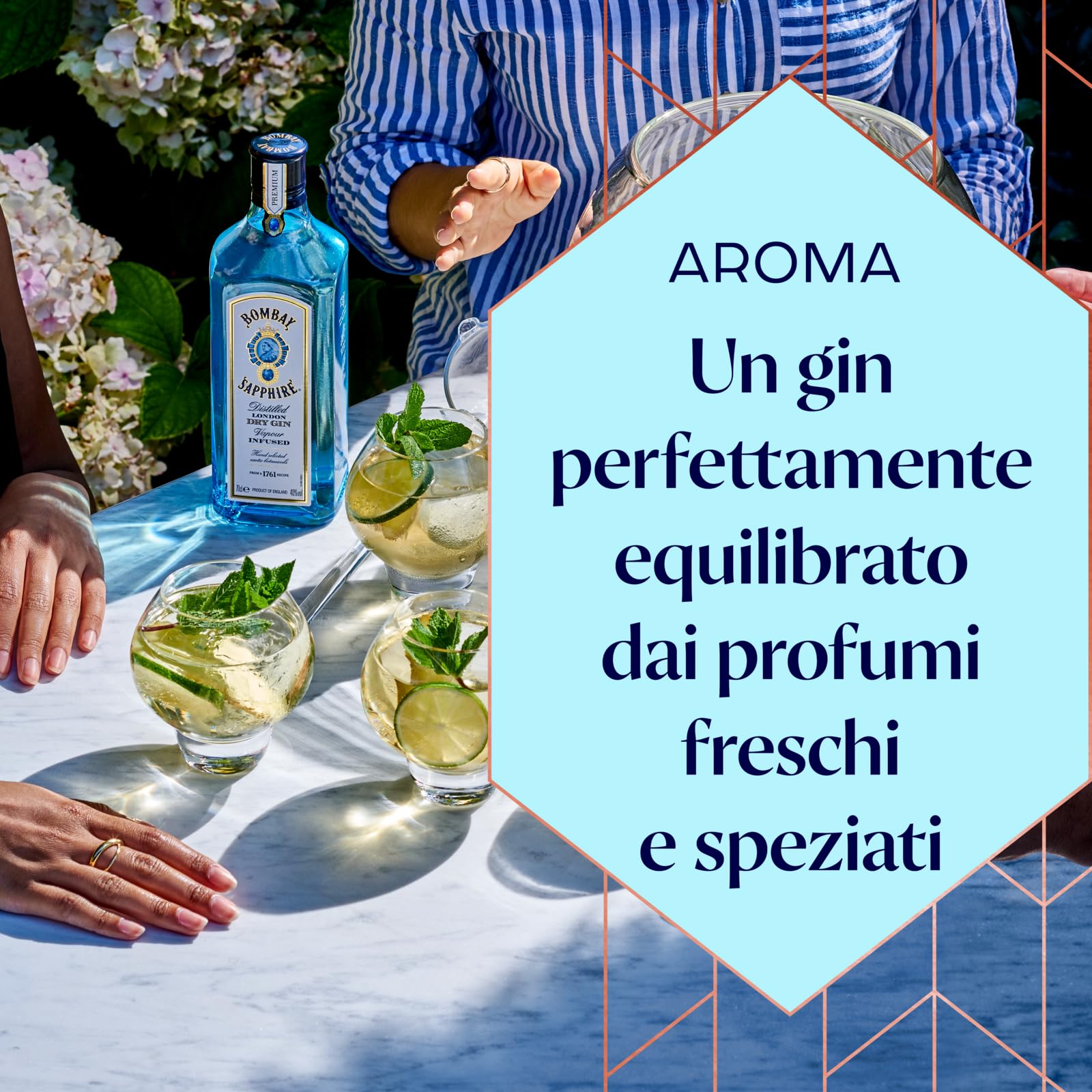 Bombay Sapphire Premium Distilled London Dry Gin, Vol. 40%, 100cl / 1L, infuso a vapore con 10 botanical esotici selezionati con cura