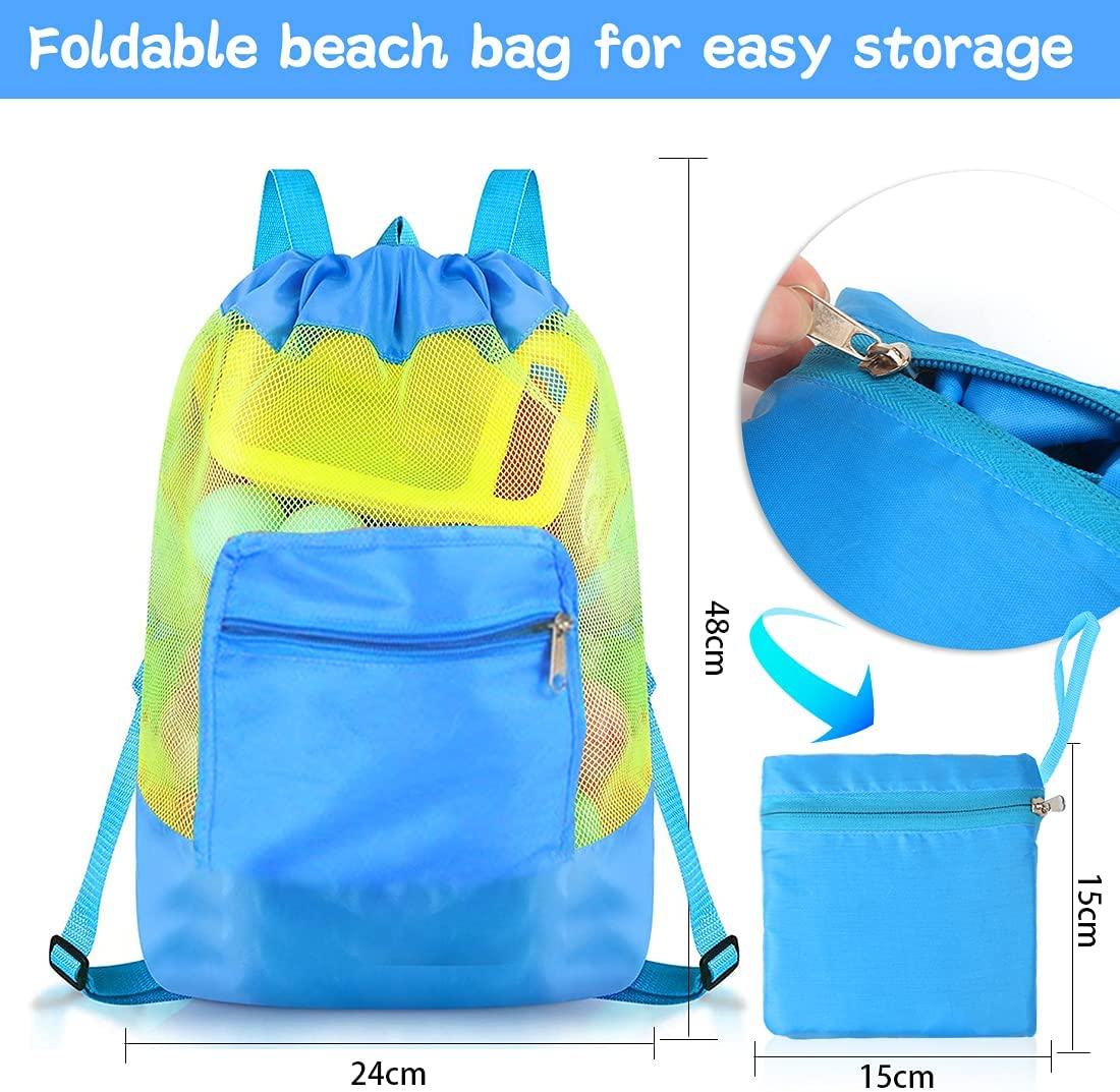 • ★ Materiale premium: borsa da spiaggia in nylon e rete, leggera, traspirante e resistente. Borsa portagiochi sabbia con tracolla regolabile - Le doppie spalline regolabili distribuiscono la forza in modo uniforme e più confortevole.
