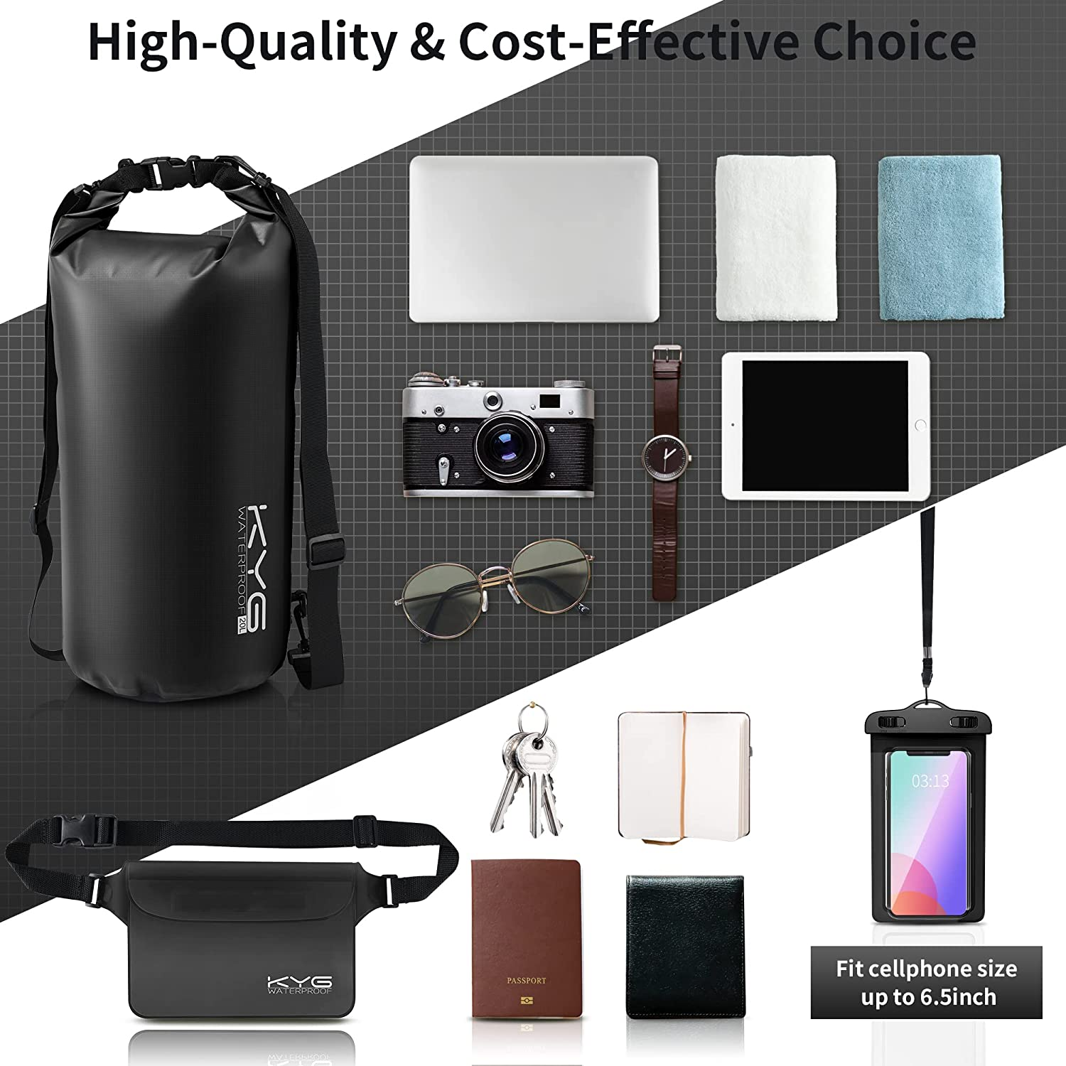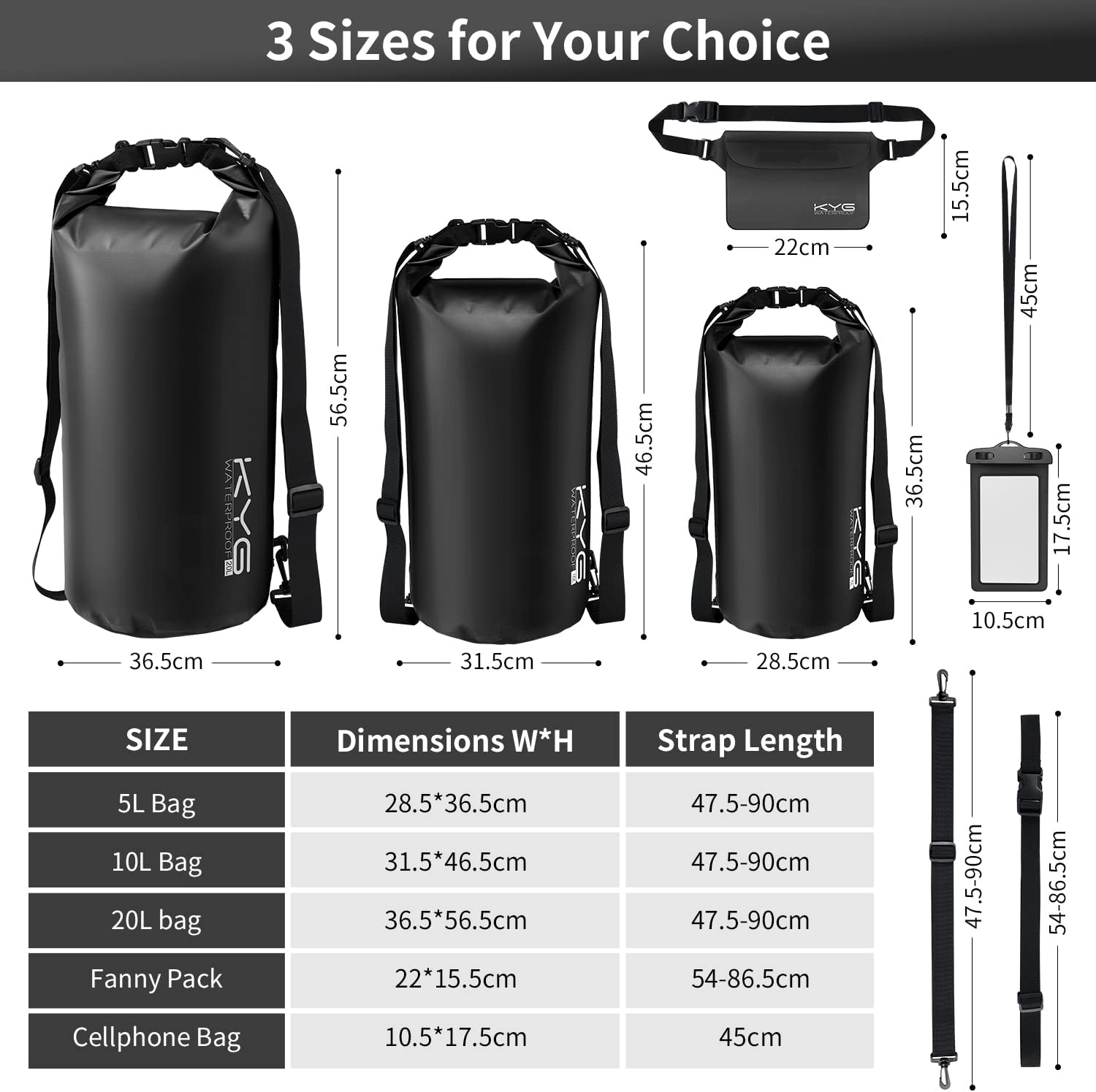 Borsa Impermeabile a Tracolla Regolabile Dry Bag 5L/10L/20L Kit 3 in 1 Marsupio