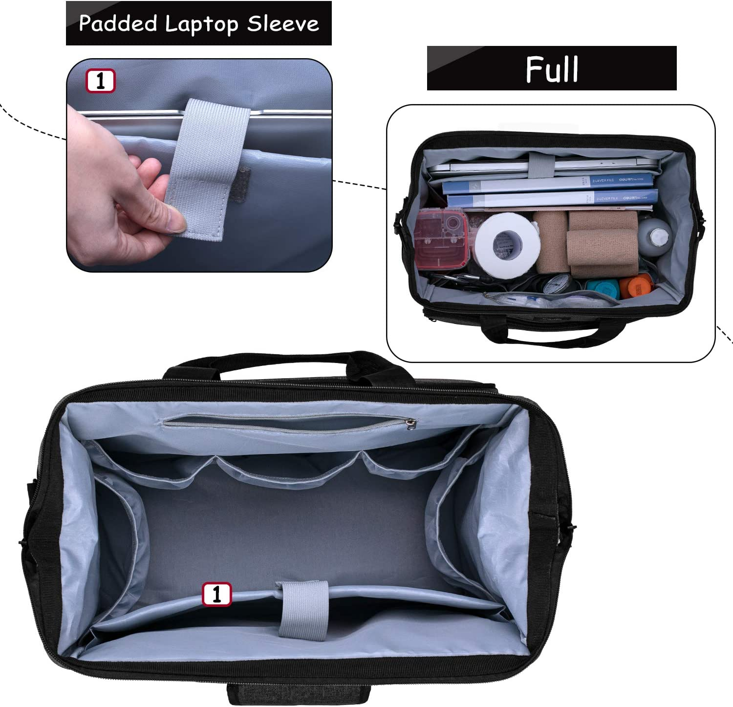 - GRANDE CAPACITÀ: lo scomparto principale con 5 tasche elastiche è abbastanza profondo per le forniture cliniche, come un contenitore per lo smaltimento affilato, lo stetoscopio. Uno strato di chiusura elastico per iPad o documenti clinici (SOLO BORSA, NON INCLUDE STRUMENTI MEDICI).