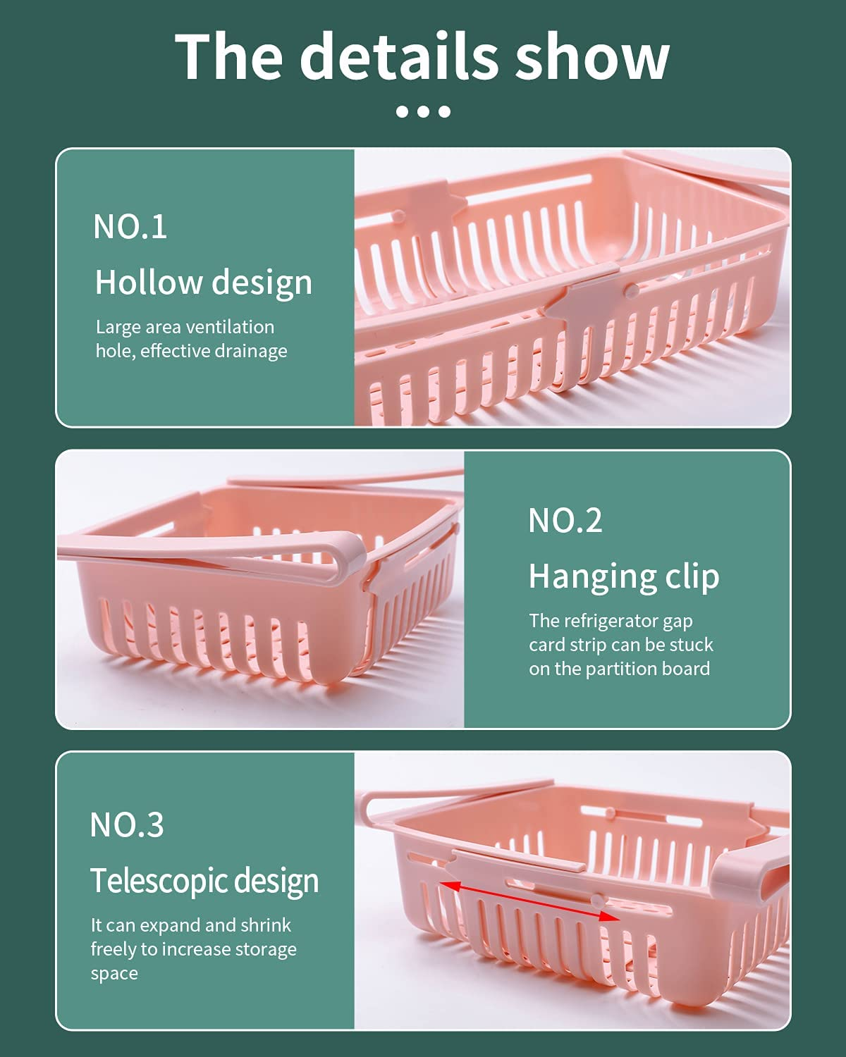 • 【Dimensioni perfette】Le dimensioni estese sono 19 x 17 x 8,5 cm, il design scorrevole del binario di scorrimento assicura che il cassetto si apra e si chiuda facilmente. Si adatta alla maggior parte dei ripiani del frigorifero di dimensioni standard, si prega di misurare le dimensioni del ripiano per un corretto montaggio. Nessuno strumento richiesto, installa in pochi secondi.