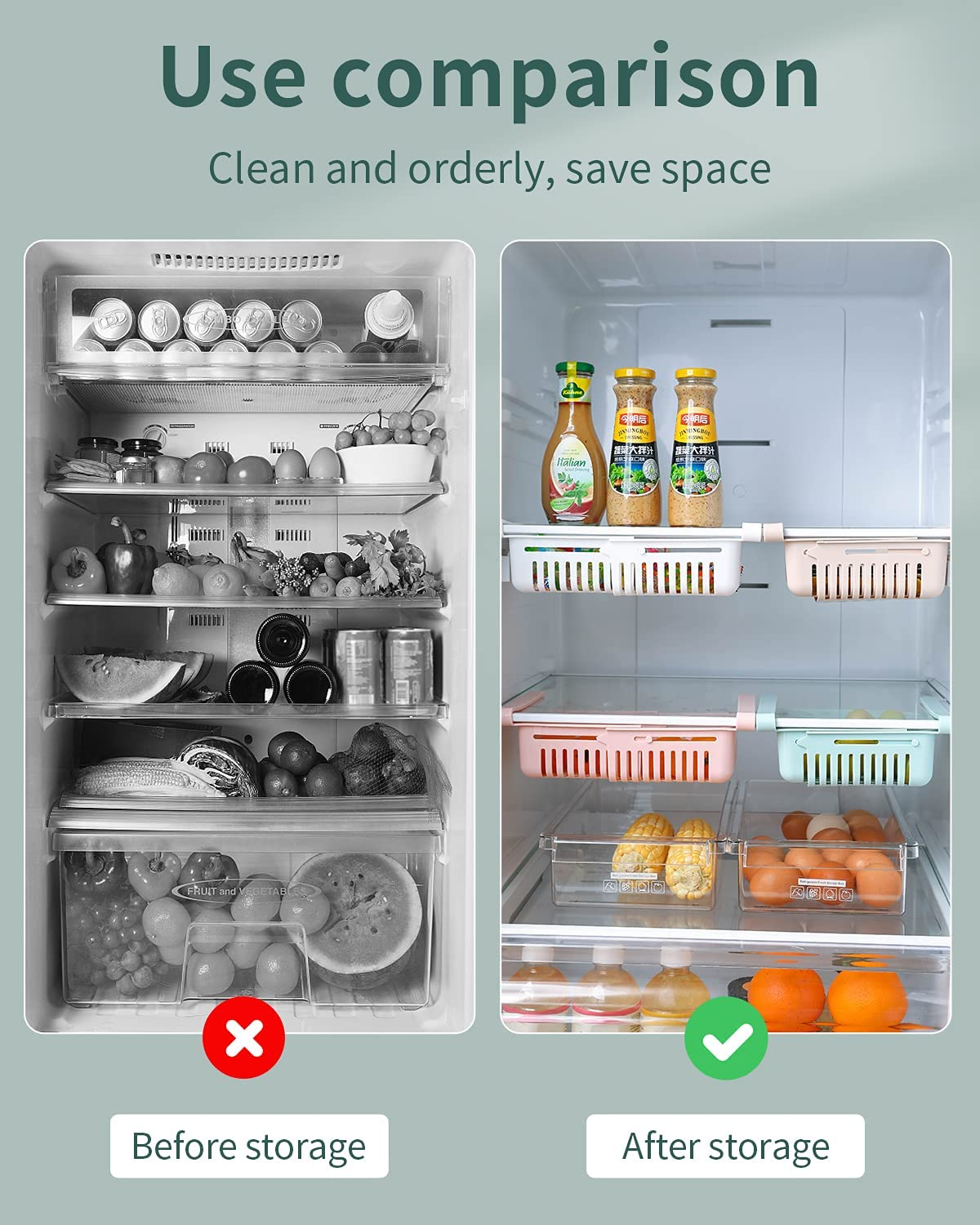 • 【Conservazione multiuso】L'organizer trasparente per cassetti è perfetto per organizzare bevande in scatola, verdure, salumi, formaggi, verdure surgelate insaccate e altri prodotti alimentari nel frigorifero, spazio sprecato sotto gli armadietti della cucina e massimizzare la conservazione nella dispensa.
