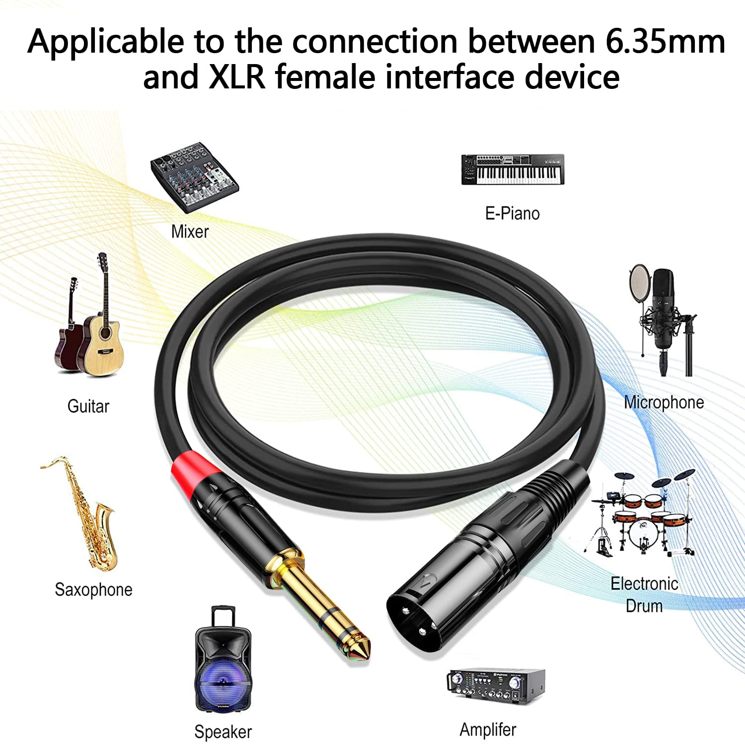 - Câble de microphone XLR : le câble d'interconnexion symétrique TRS vers XLR mâle de 6,5 mm est une solution idéale pour la connexion. Le câble XLR vers TRS peut être associé à un mélangeur audio, une caméra, un amplificateur de puissance, un microphone, un égaliseur, un haut-parleur, etc.