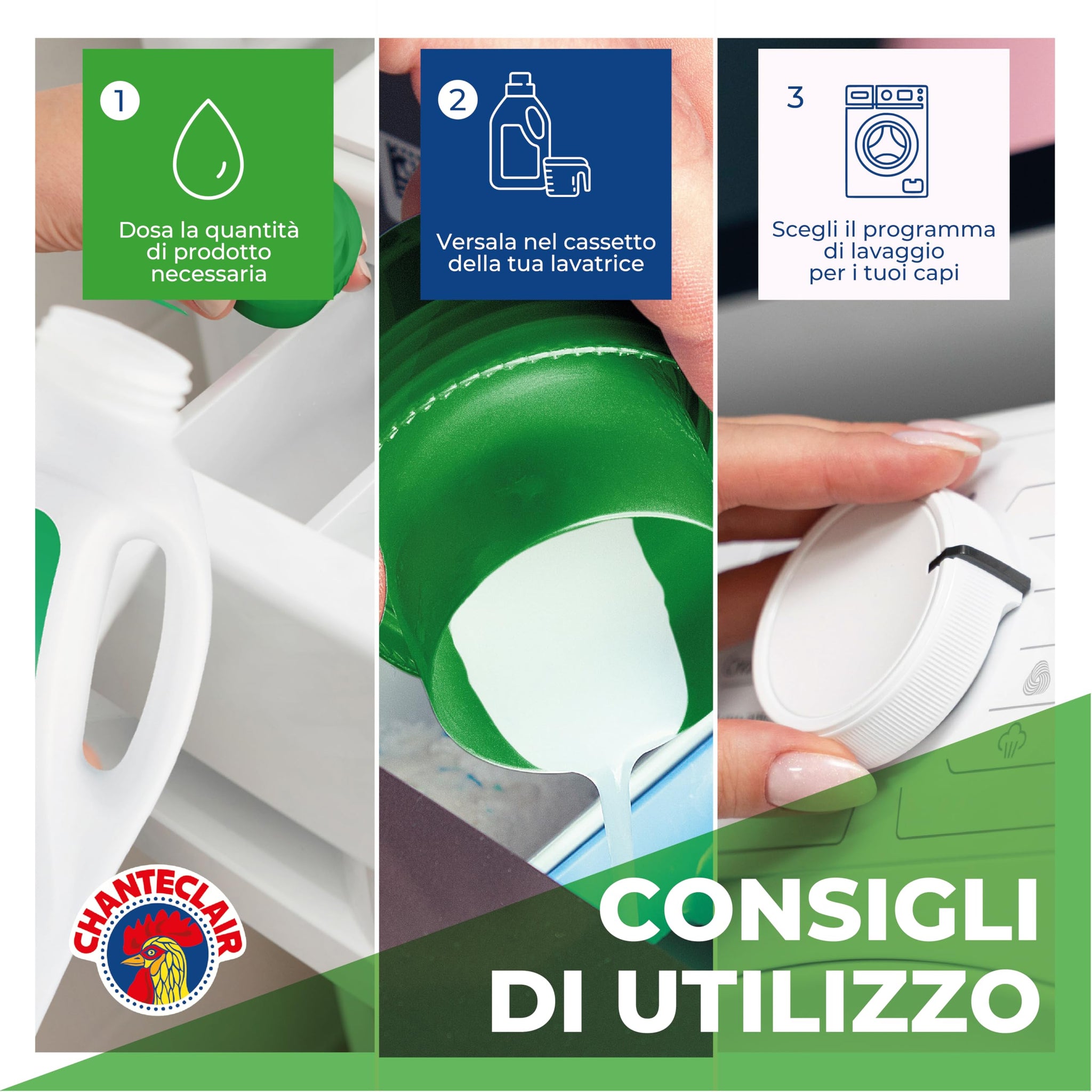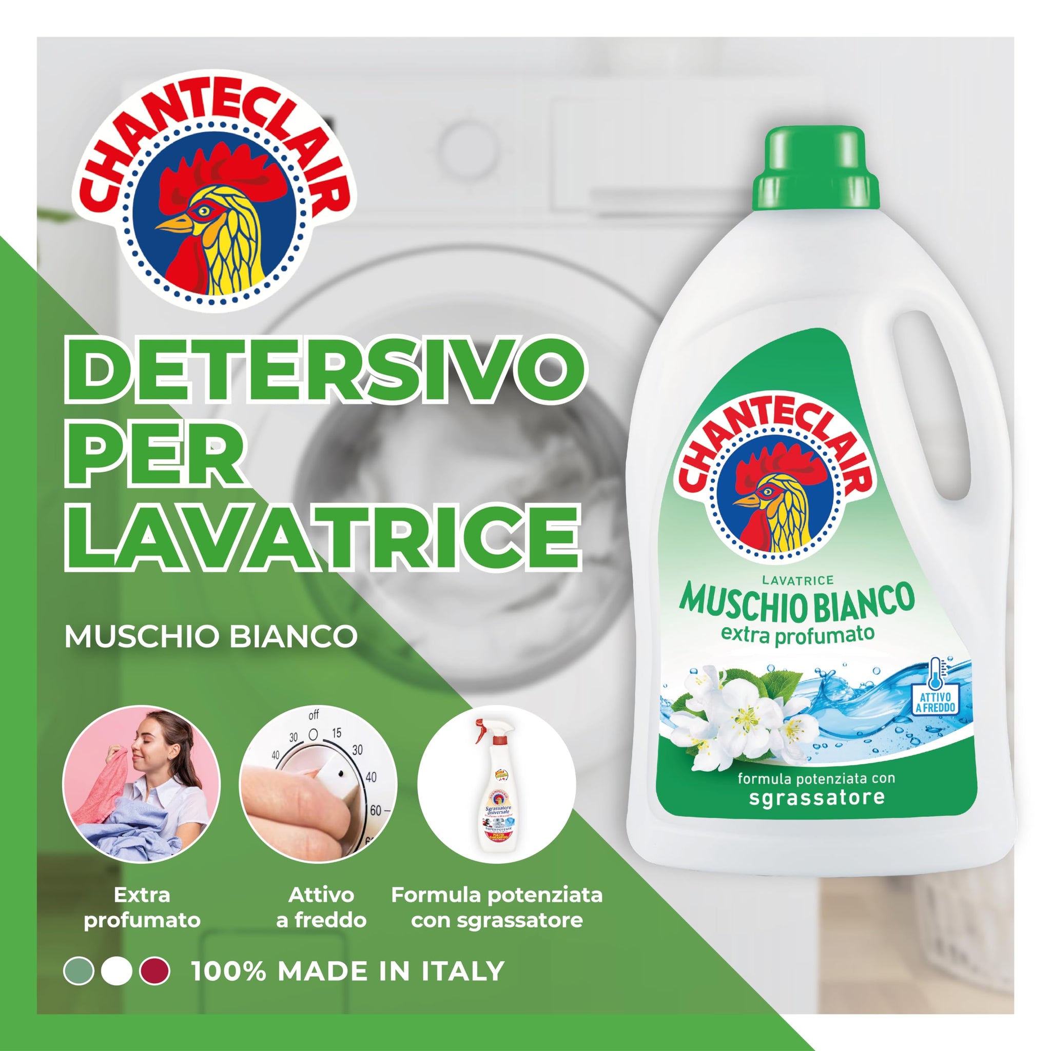 Chanteclair - Detersivo per Lavatrice, Profumo Muschio Bianco, Formula Concentrata, con Vero Sgrassatore - 3 Flaconi da 1260 ml