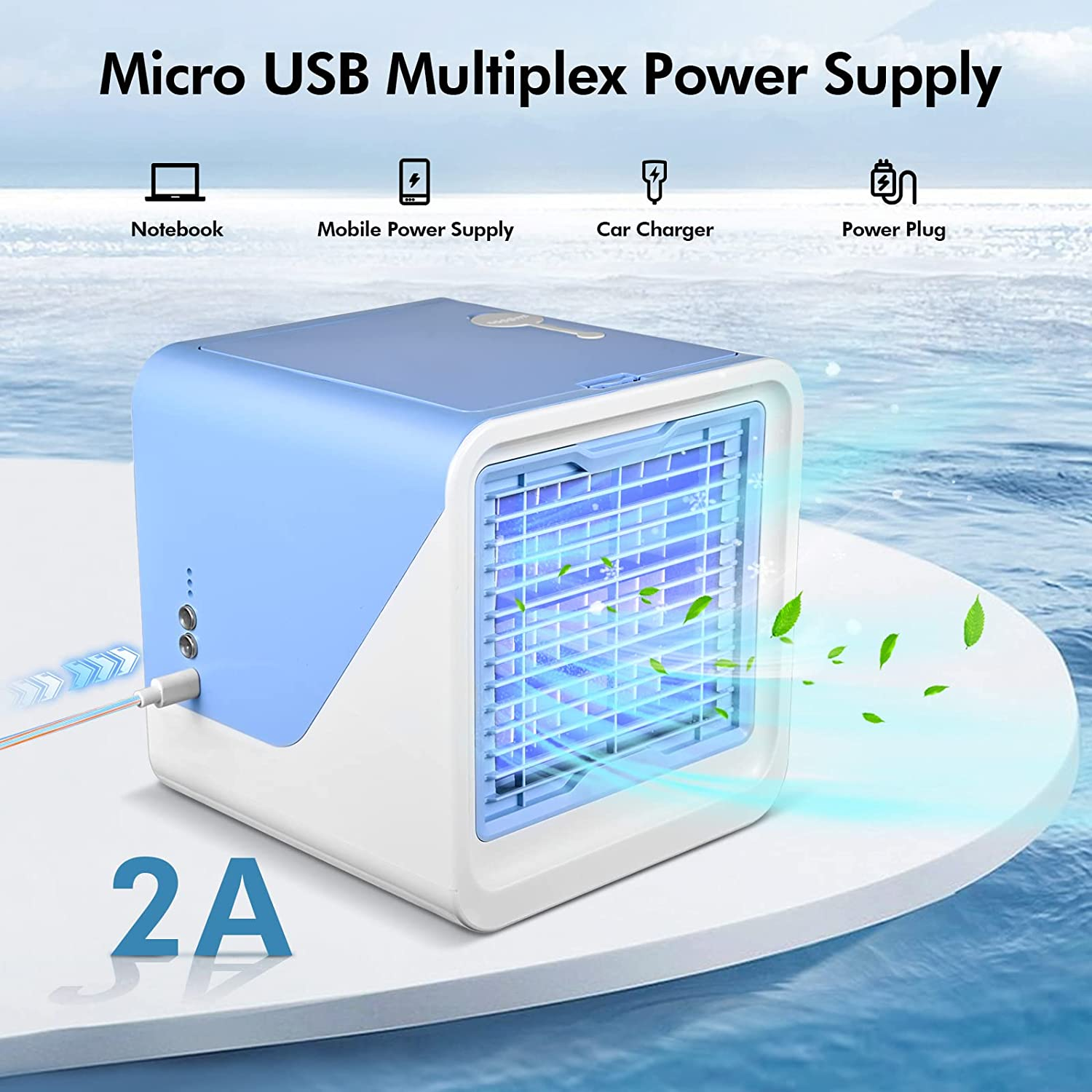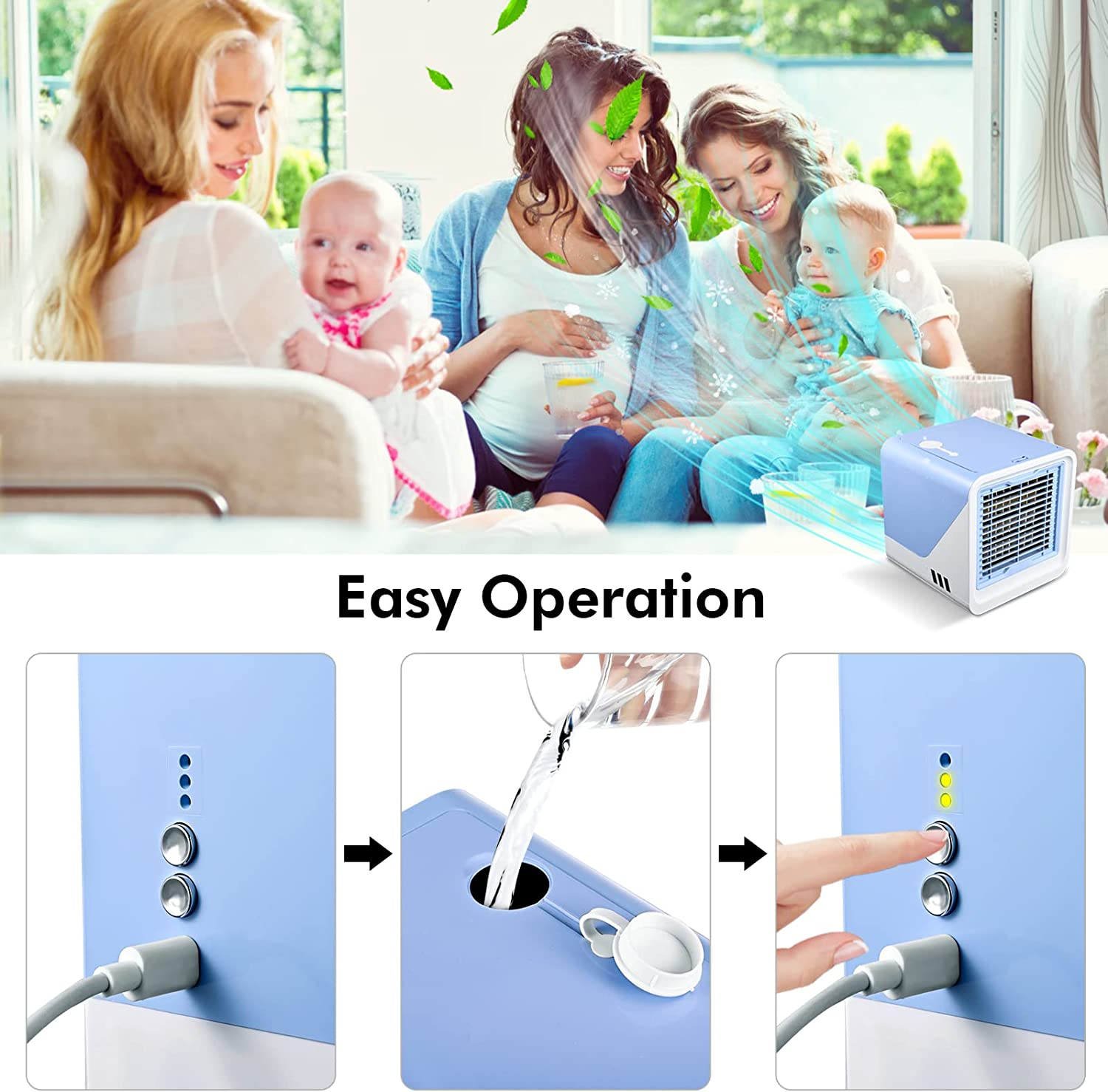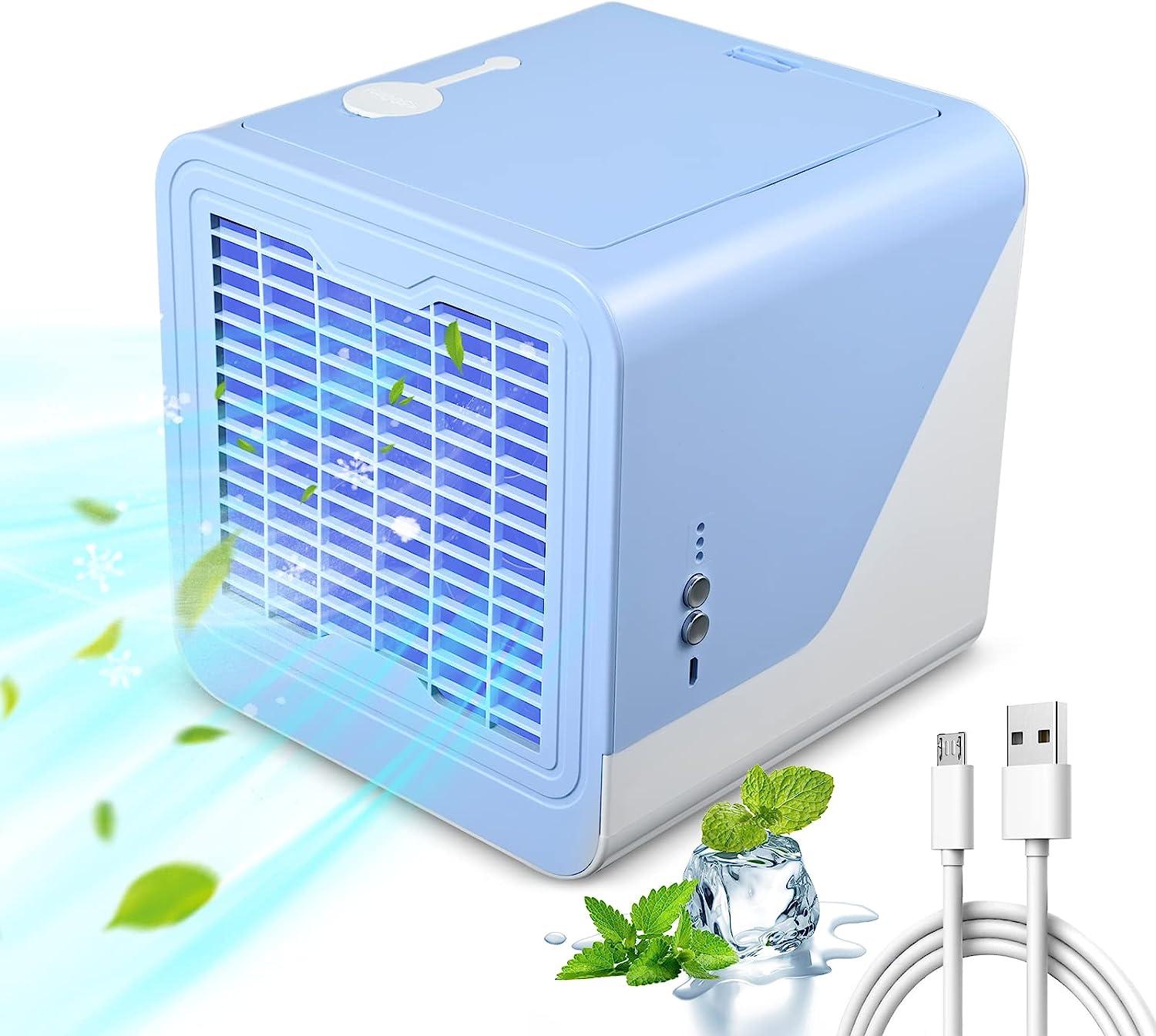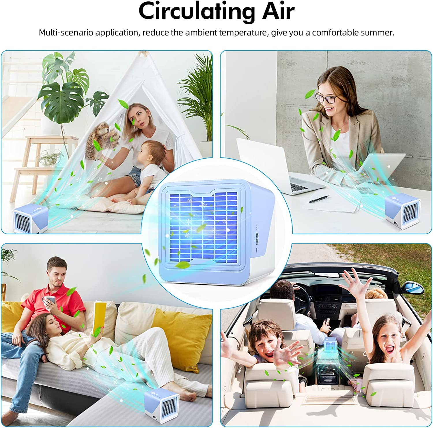 - 【Piccolo e portatile】 Il mini raffreddatore d'aria è piccolo e leggero, può essere comodamente alimentato tramite presa a muro o porta USB senza consumare molta energia. Puoi metterlo nella tua camera da letto, nella cameretta dei bambini, in ufficio e una buona scelta per il campeggio estivo.