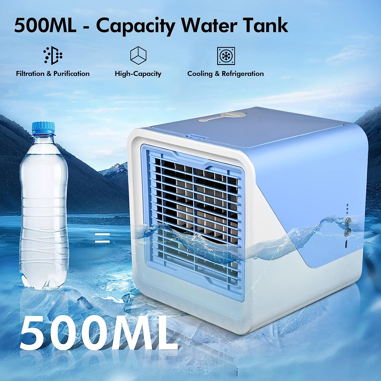 - 【Grande serbatoio dell'acqua】 Il nostro refrigeratore d'aria ha un serbatoio dell'acqua da 500 ml e può essere utilizzato per un massimo di 6-8 ore. L'effetto di raffreddamento è ancora migliore aggiungendo acqua ghiacciata. Il nostro raffreddatore d'aria è privo di freon. Proteggi la salute della tua famiglia!