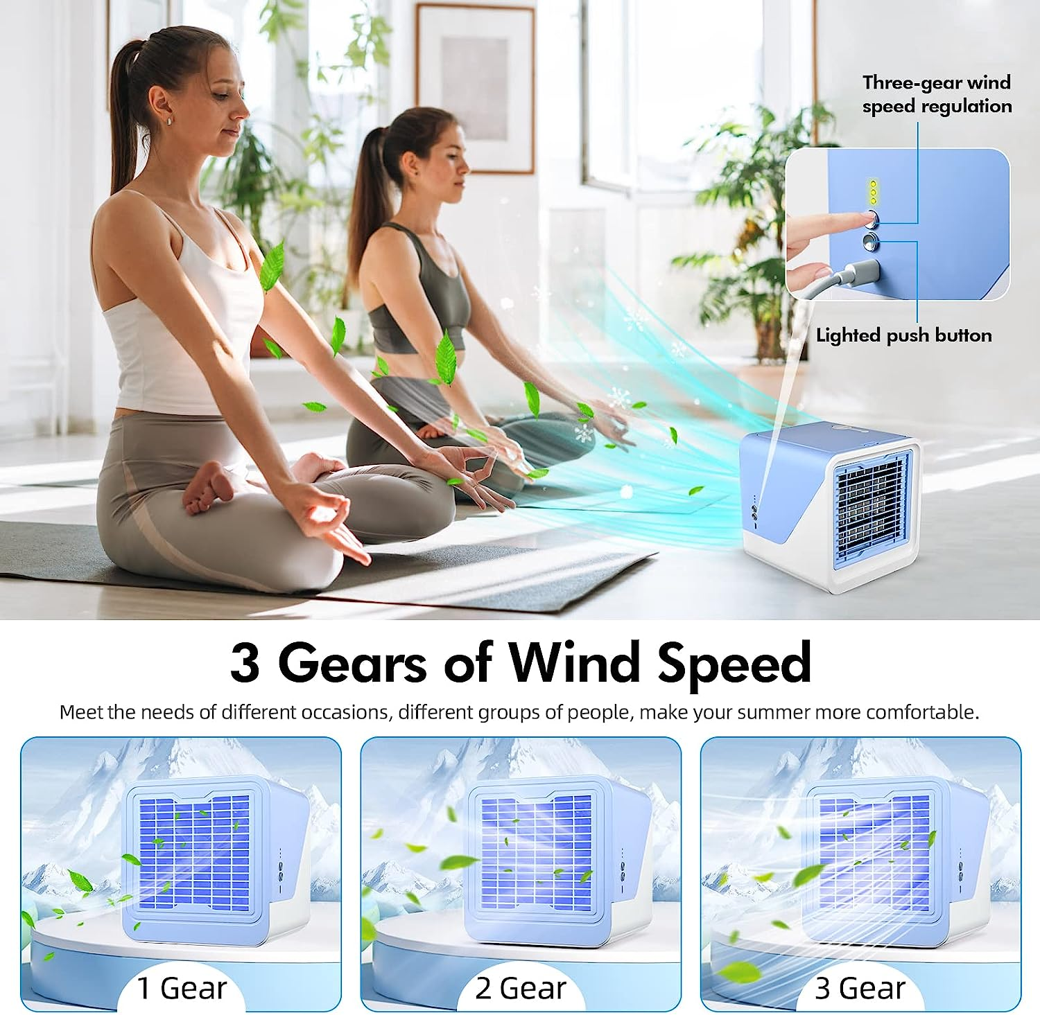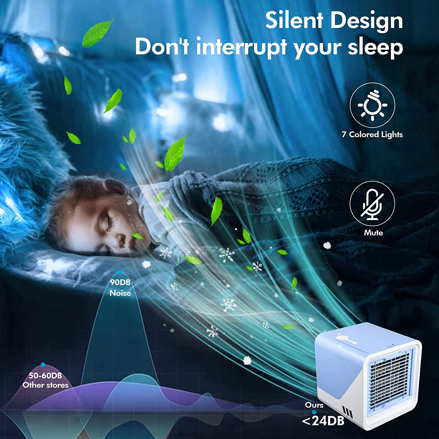 - 【Personalizzabile】 Sette luci d'atmosfera che cambiano colore e 3 livelli di raffreddamento, regolano l'energia eolica in base alle proprie esigenze. Che creano un'atmosfera romantica e forniscono un ambiente confortevole per dormire. Vivi l'estate al meglio!
