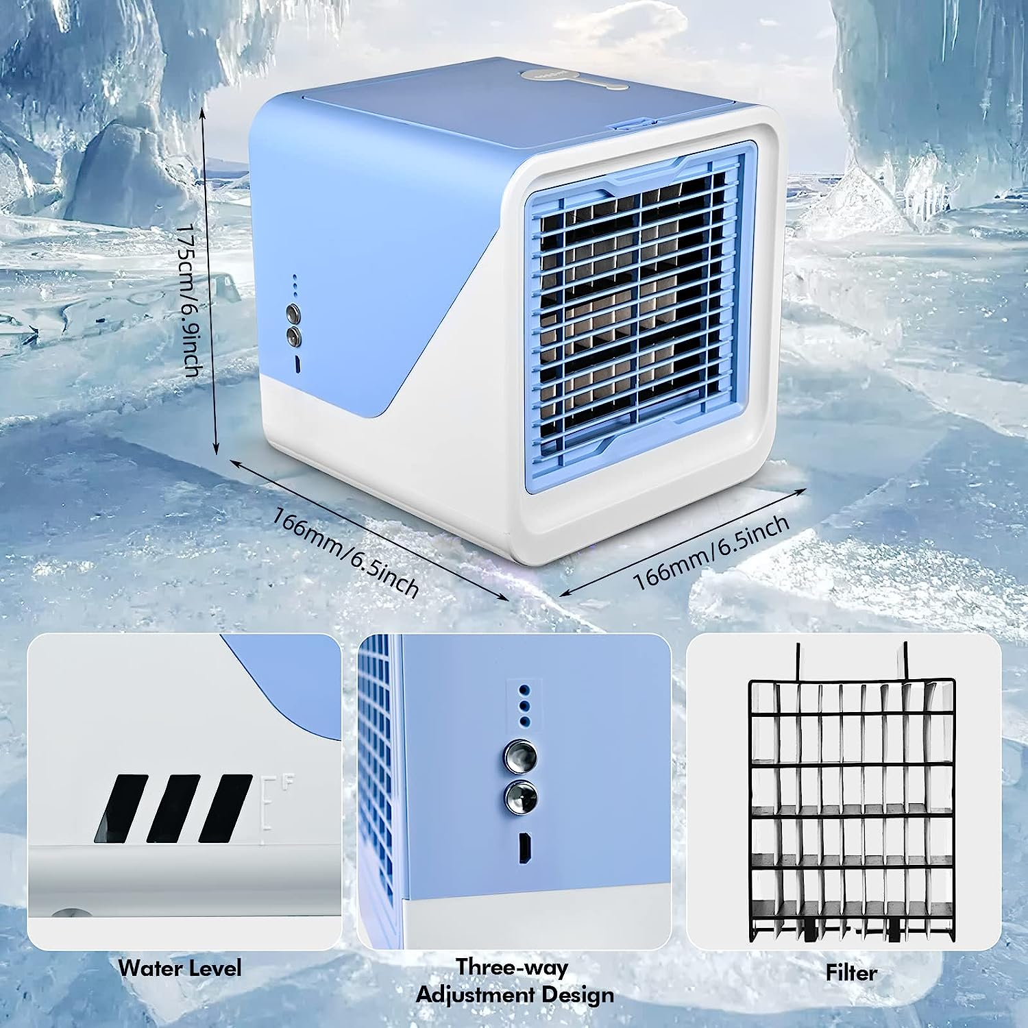- 【Basso rumore】 Il nostro dispositivo di raffreddamento dell'aria mobile utilizza un motore brushless avanzato, a basso rumore e non influisce sul sonno. Condizionatore ad acqua per aria fresca e umidificata, senza sostanze chimiche nocive, ideale per la camera dei bambini