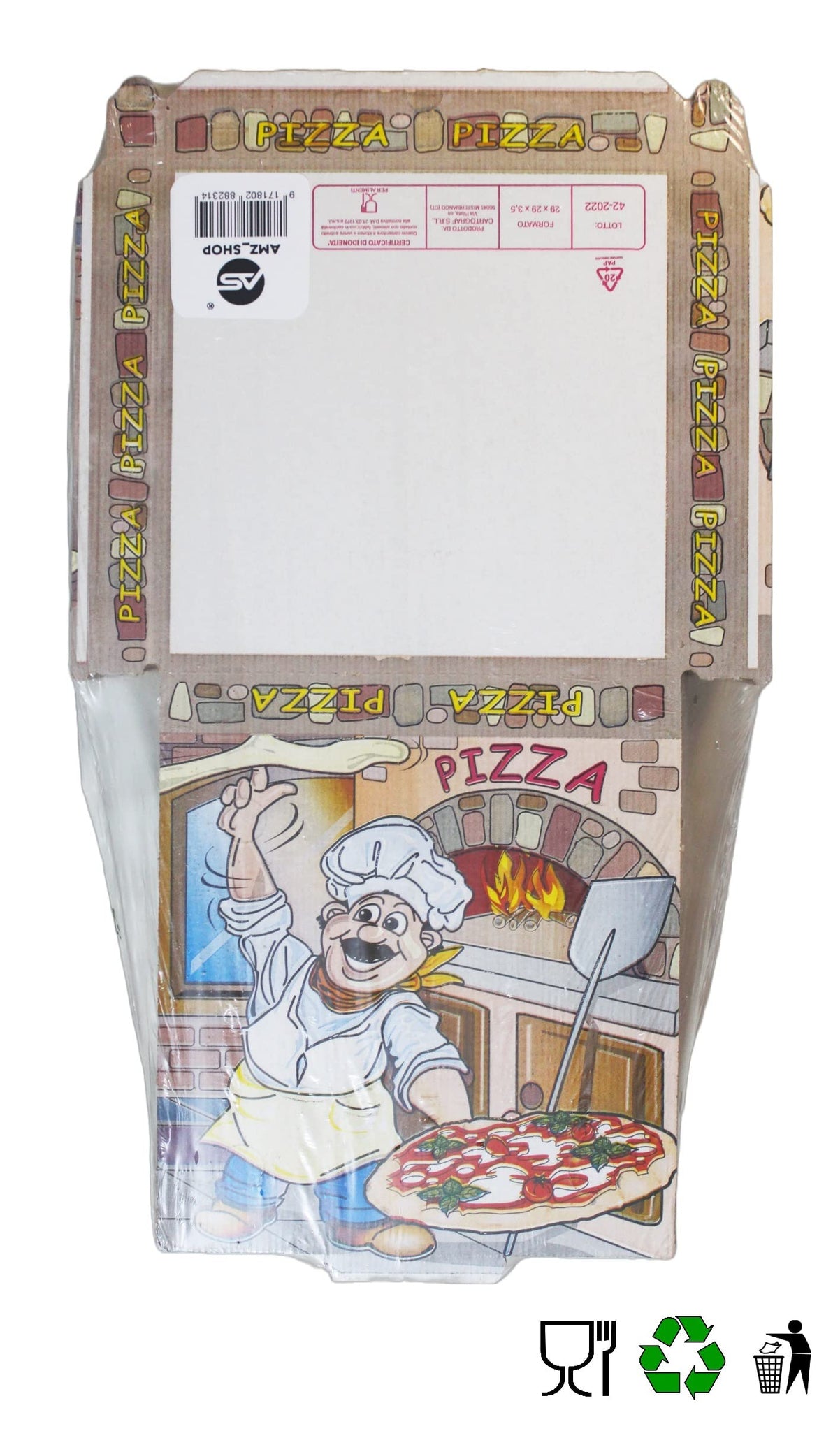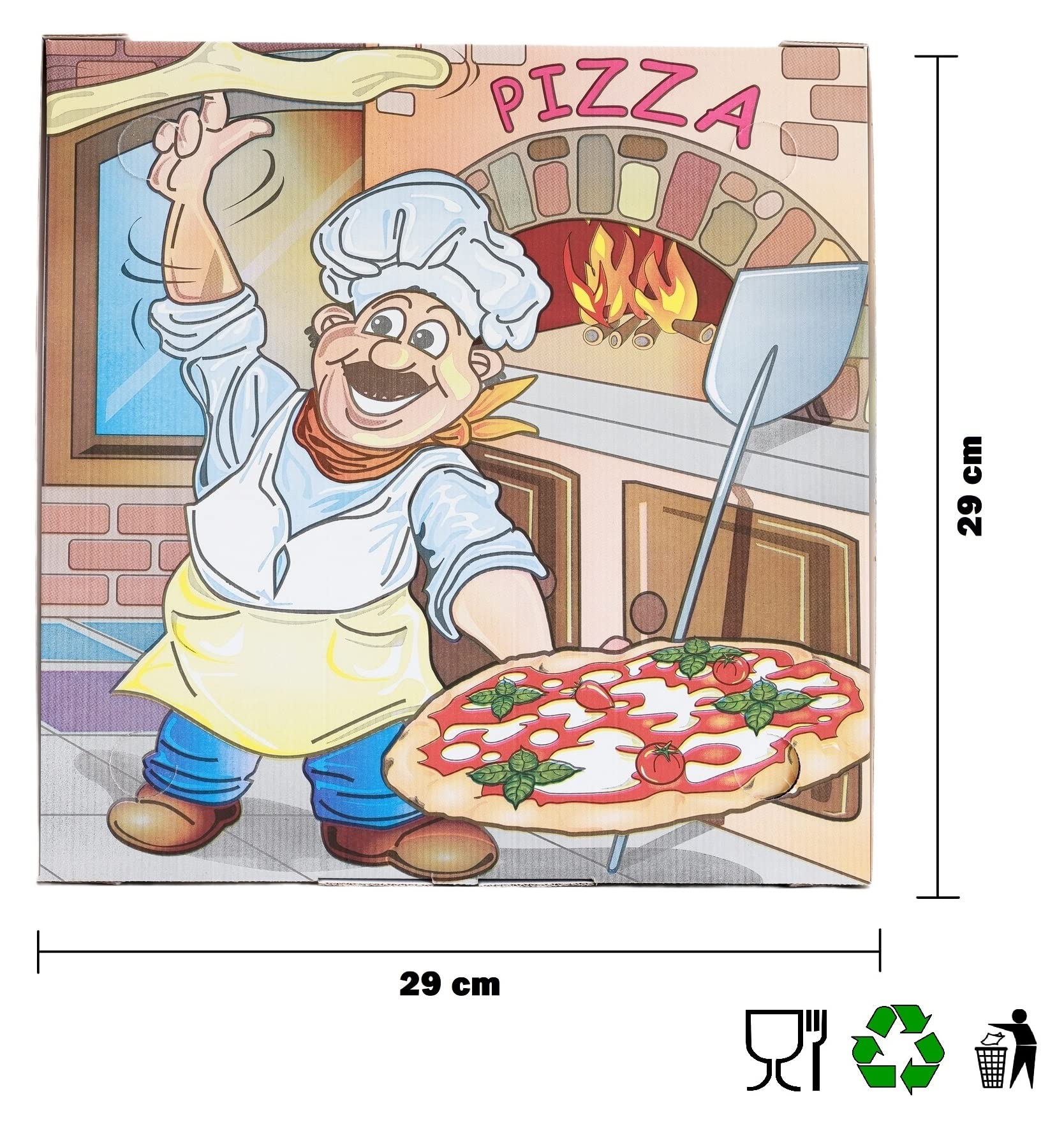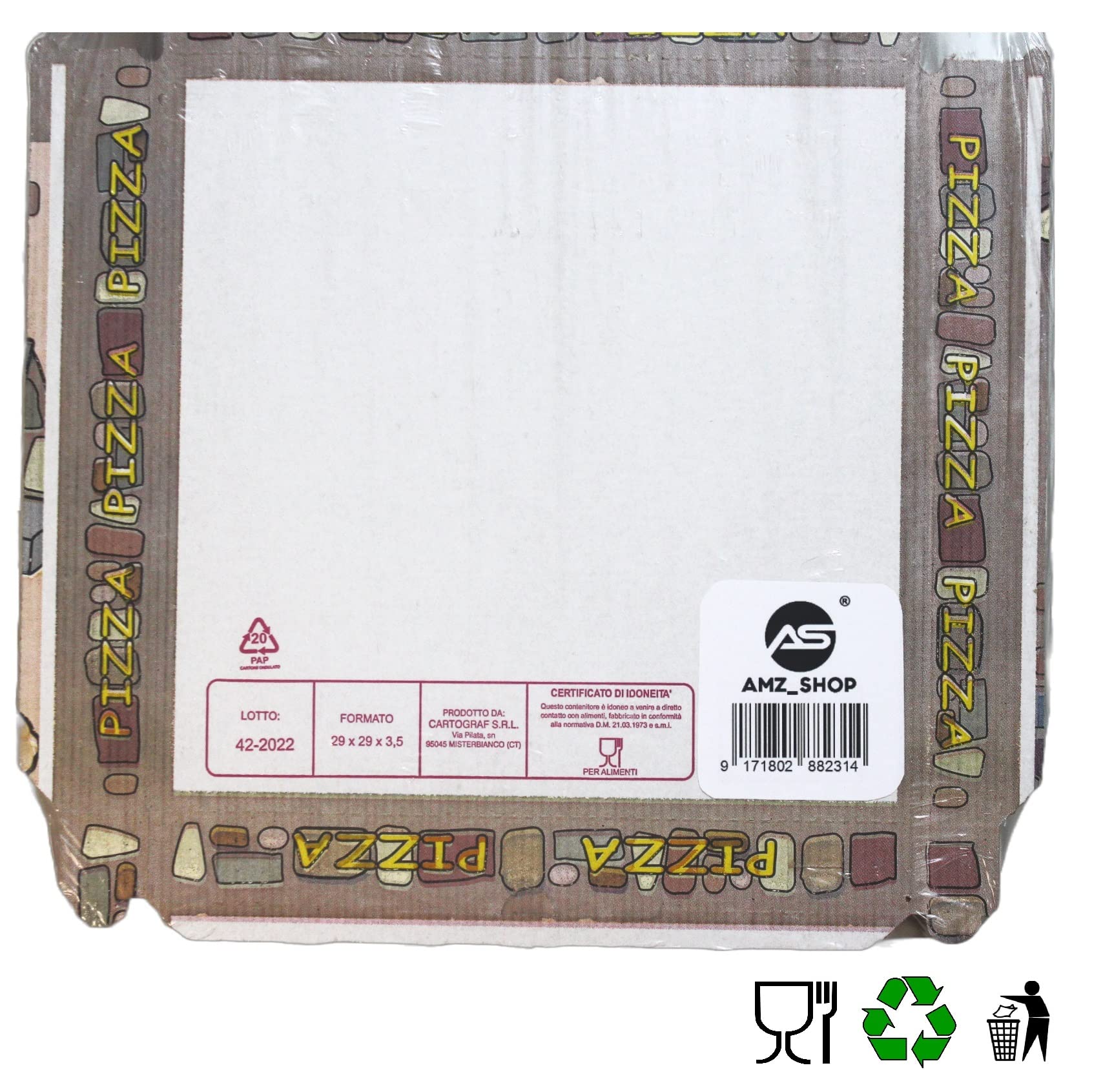 I cartoni per pizza da asporto sono la soluzione perfetta per mantenere la tua pizza calda e croccante durante il trasporto. Realizzati con materiali di alta qualità e progettati per resistere alla pressione del peso della pizza e all'umidità, questi cartoni garantiscono che la tua pizza arrivi intatta. Con dimensioni standard di 29 x 29 x 3.5 cm, questi cartoni si adattano perfettamente alle dimensioni standard delle pizze e sono venduti in confezioni da 100, per soddisfare le esigenze dei ristoranti e delle attività che effettuano consegne a domicilio. Acquistando questi cartoni per pizza da asporto, potrai garantire un'esperienza di qualità ai tuoi clienti.