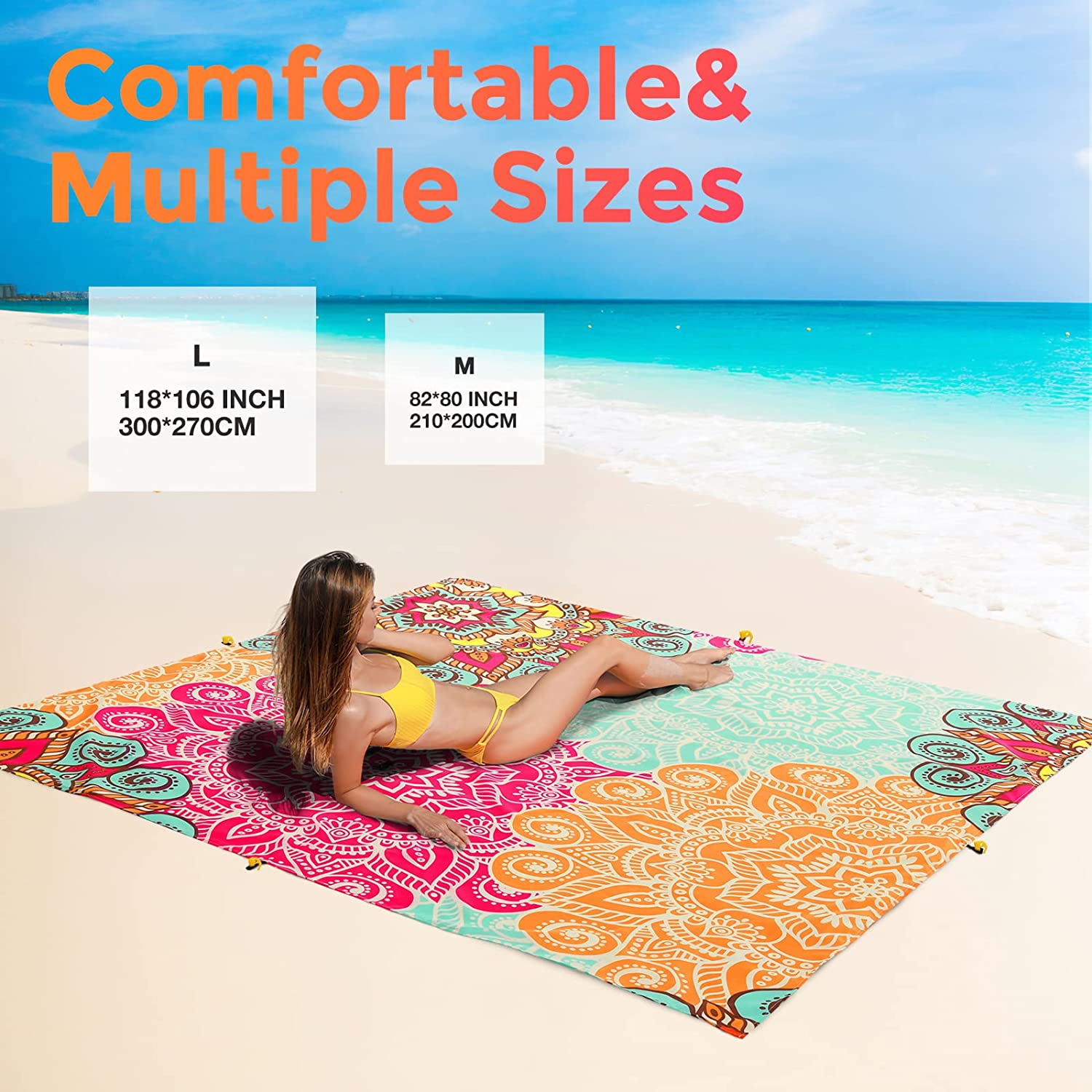 - 【Design Extra Large】 La coperta da spiaggia è disponibile in due misure, che sono più grandi e più larghe rispetto ad altri tappetini da spiaggia sul mercato. Può soddisfare le esigenze di più persone per giocare. La taglia M è adatta per 1-3 adulti, la taglia L è adatta per 1-5 adulti. Una buona scelta per viaggiare in spiaggia con la famiglia e gli amici.