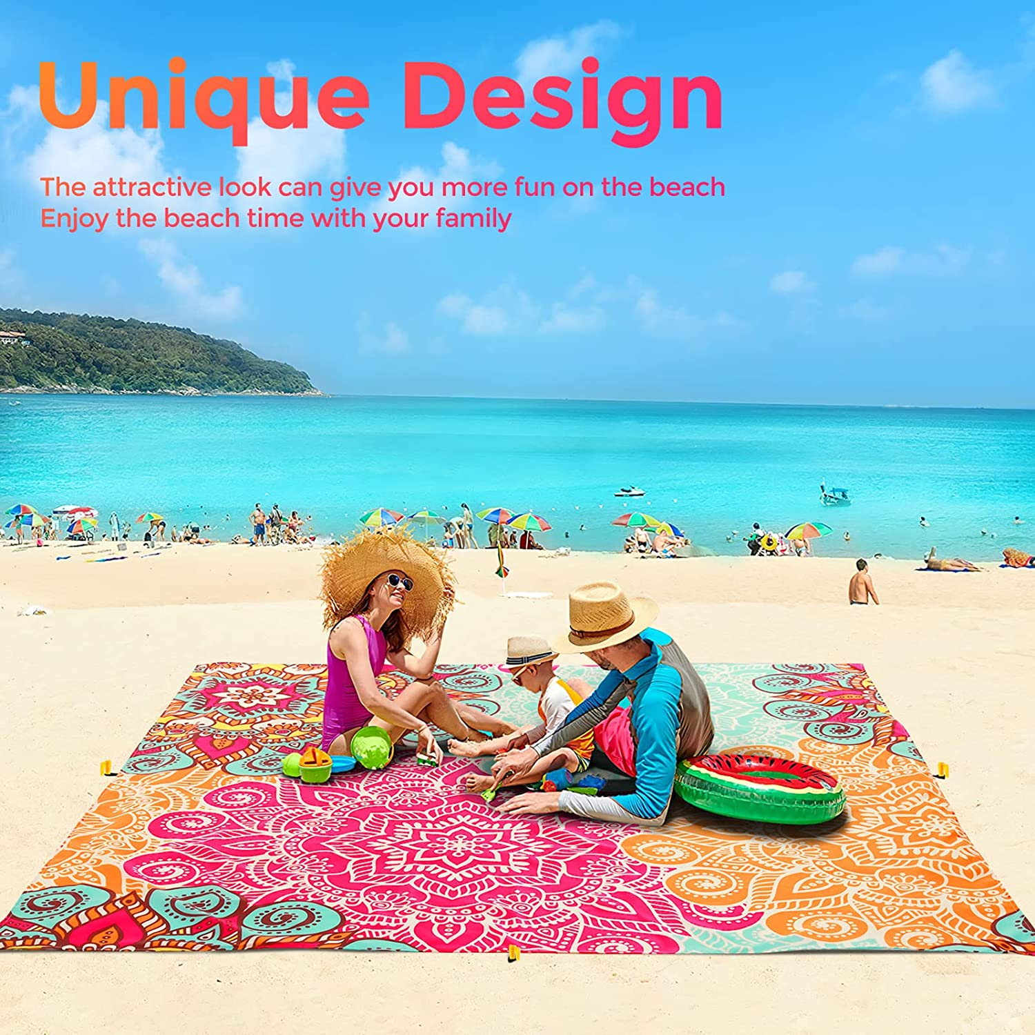 - 【Design Accattivante】 La coperta da spiaggia dal design unico ha quattro stili diversi tra cui scegliere che ti faranno risaltare sulla spiaggia! Puoi trovare facilmente la tua famiglia e i tuoi amici sulla spiaggia senza preoccuparti di perderti. È perfetto anche per giardini, picnic e campeggio.