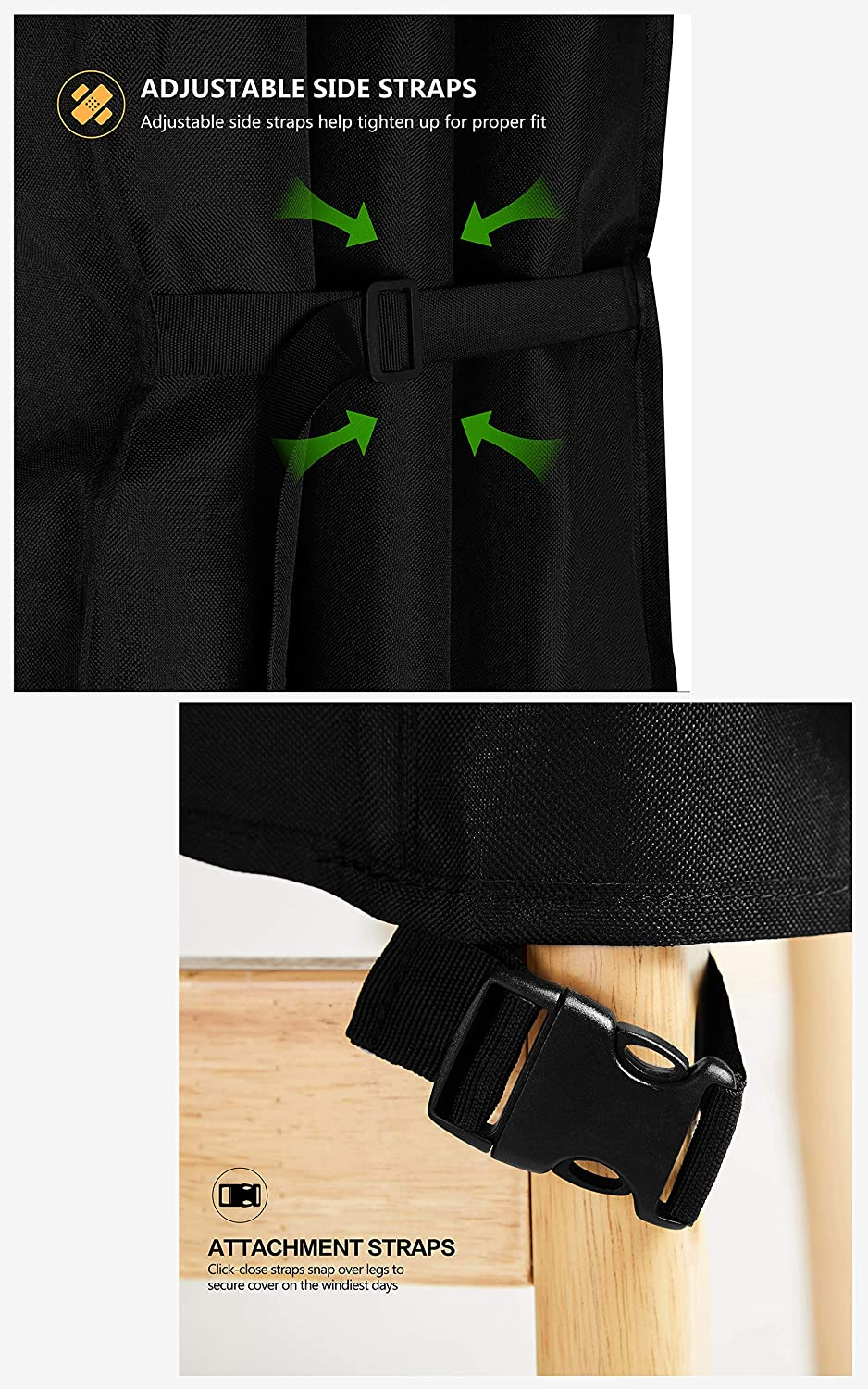 Avec 4 sangles de fixation à pression en bas et 2 sangles latérales, vous pouvez ancrer la couverture extérieure à votre barbecue de jardin et l'empêcher de s'envoler.