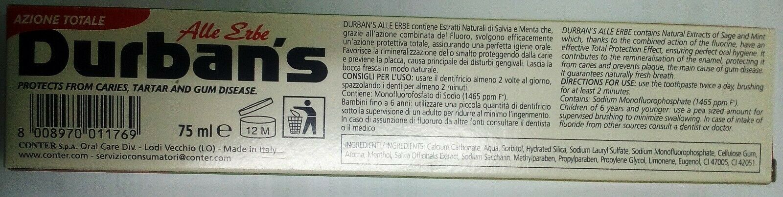 Dentifricio Durban's alle erbe menta e salvia ml. 75 x 12 pezzi