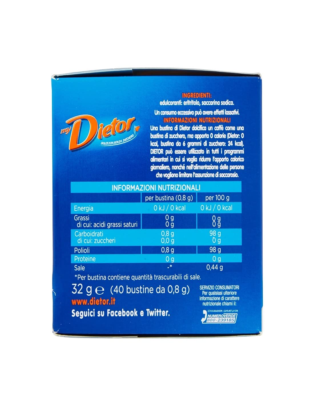 Dietor - Mydietor Dolcificante Naturale 0 Kcal, Senza Glutine, Senza Aspartame, 6 Box da 40 Bustine L'Una