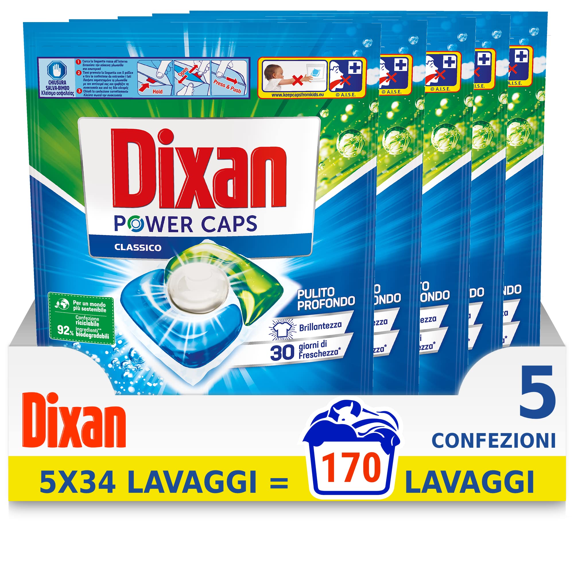 Dixan Power Caps Classico, Detersivo Lavatrice in Capsule, Confezione da 5 x 34 lavaggi