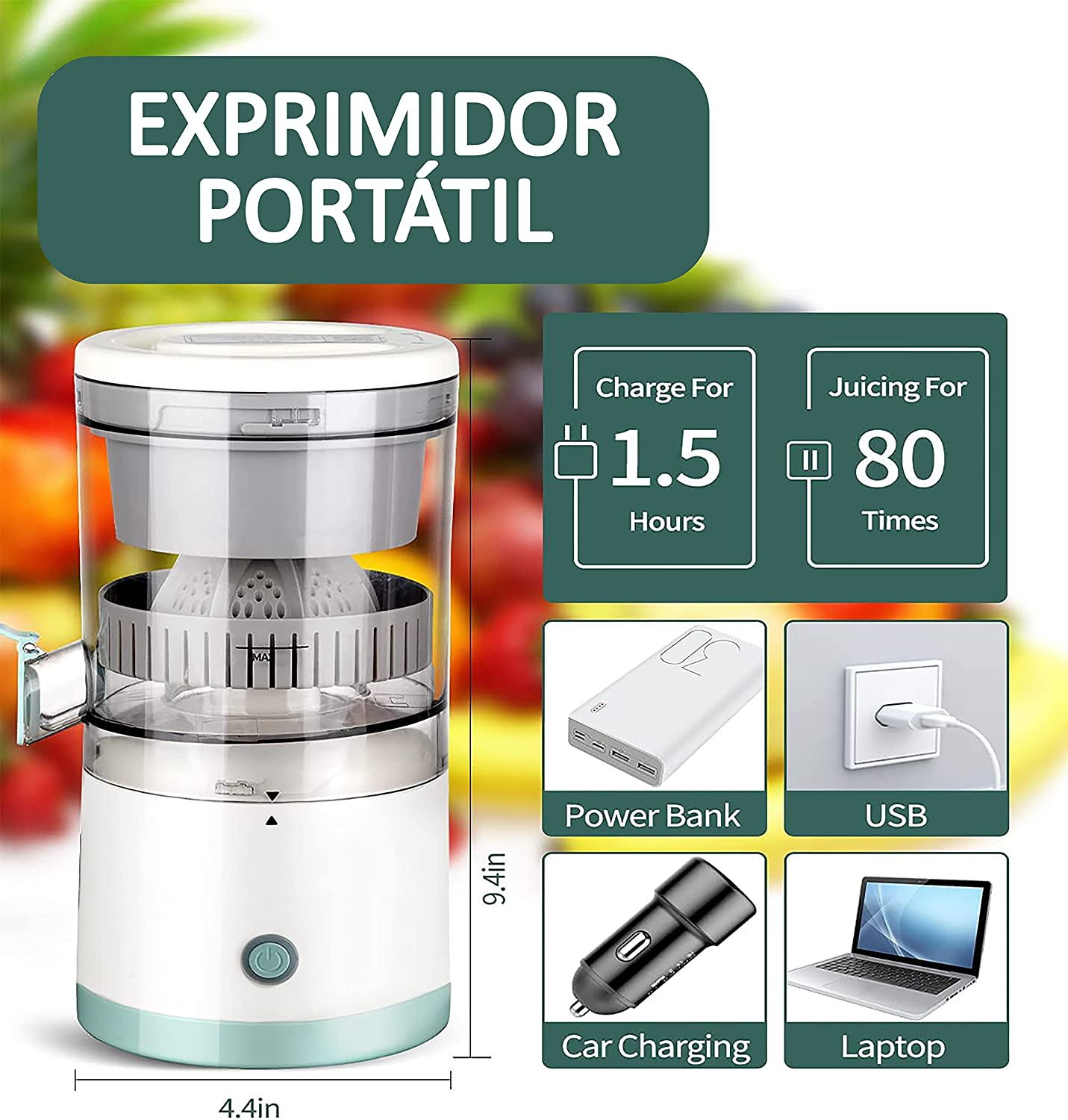 - Easily juice lemons, oranges and other citrus fruits with this portable and rechargeable juicer, its powerful 45W motor allows you to squeeze a cup of juice in seconds.