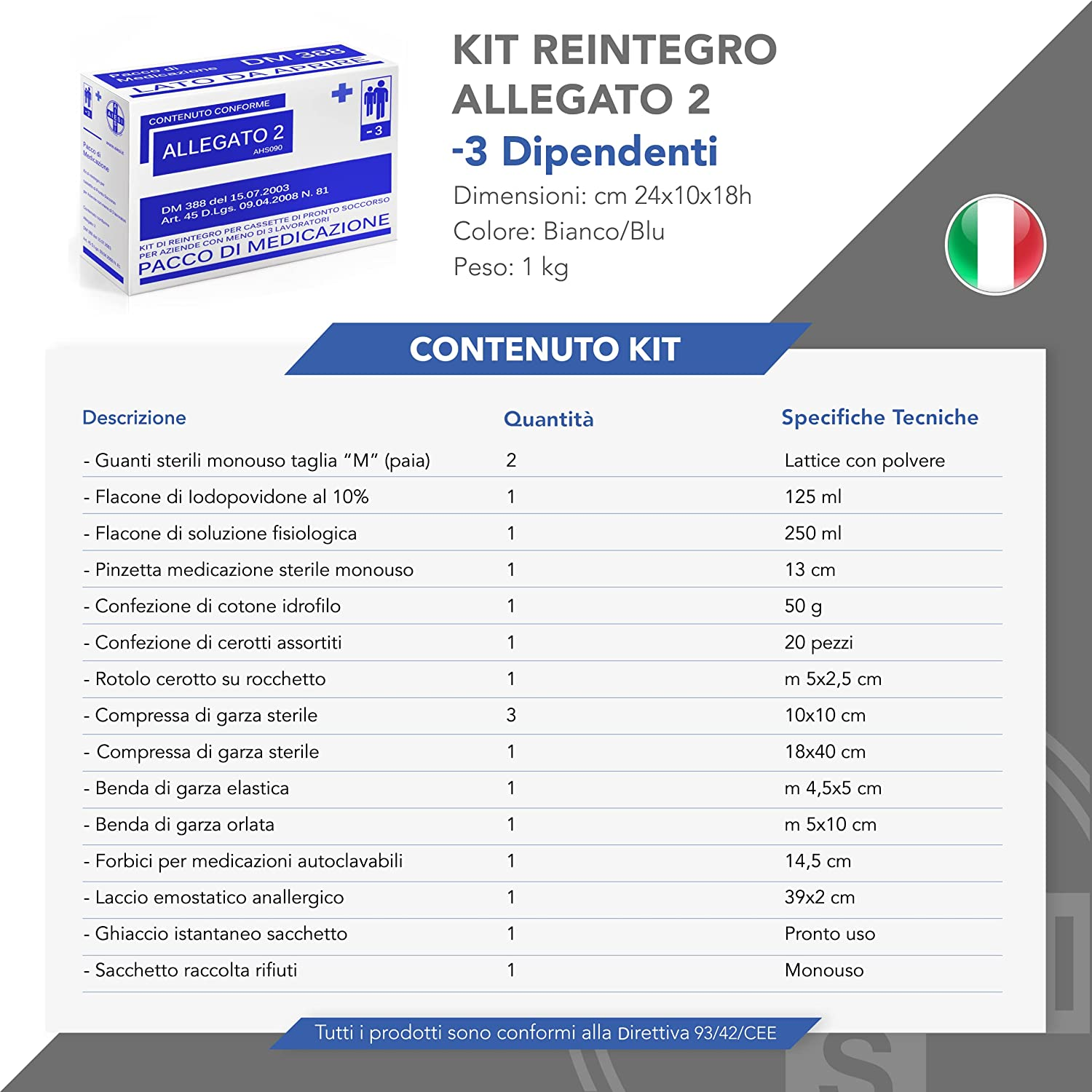 - Produit couramment utilisé pour les premiers secours d'urgence dans les entreprises ou unités de production du groupe C et en tout cas avec moins de 3 travailleurs selon le décret ministériel 388 du 15/07/2003 et modifications ultérieures DL/81