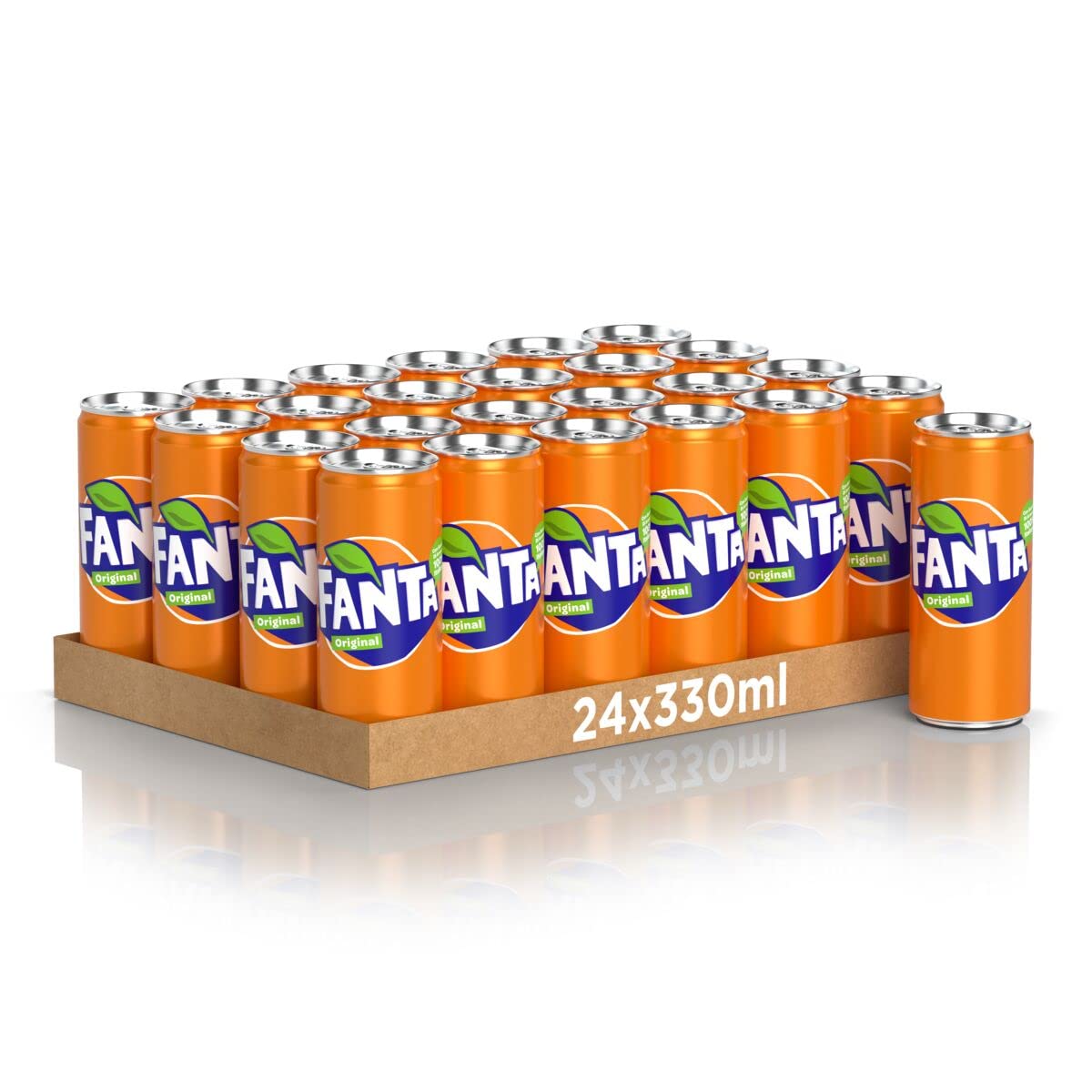Fanta Original Gusto di Arancia – 24 Lattine da 330 ml, con Succo di Arance Italiane, Senza Aggiunta di Conservanti, Lattina 100% riciclabile, Gusto Rinfrescante, Bevanda Analcolica Frizzante
