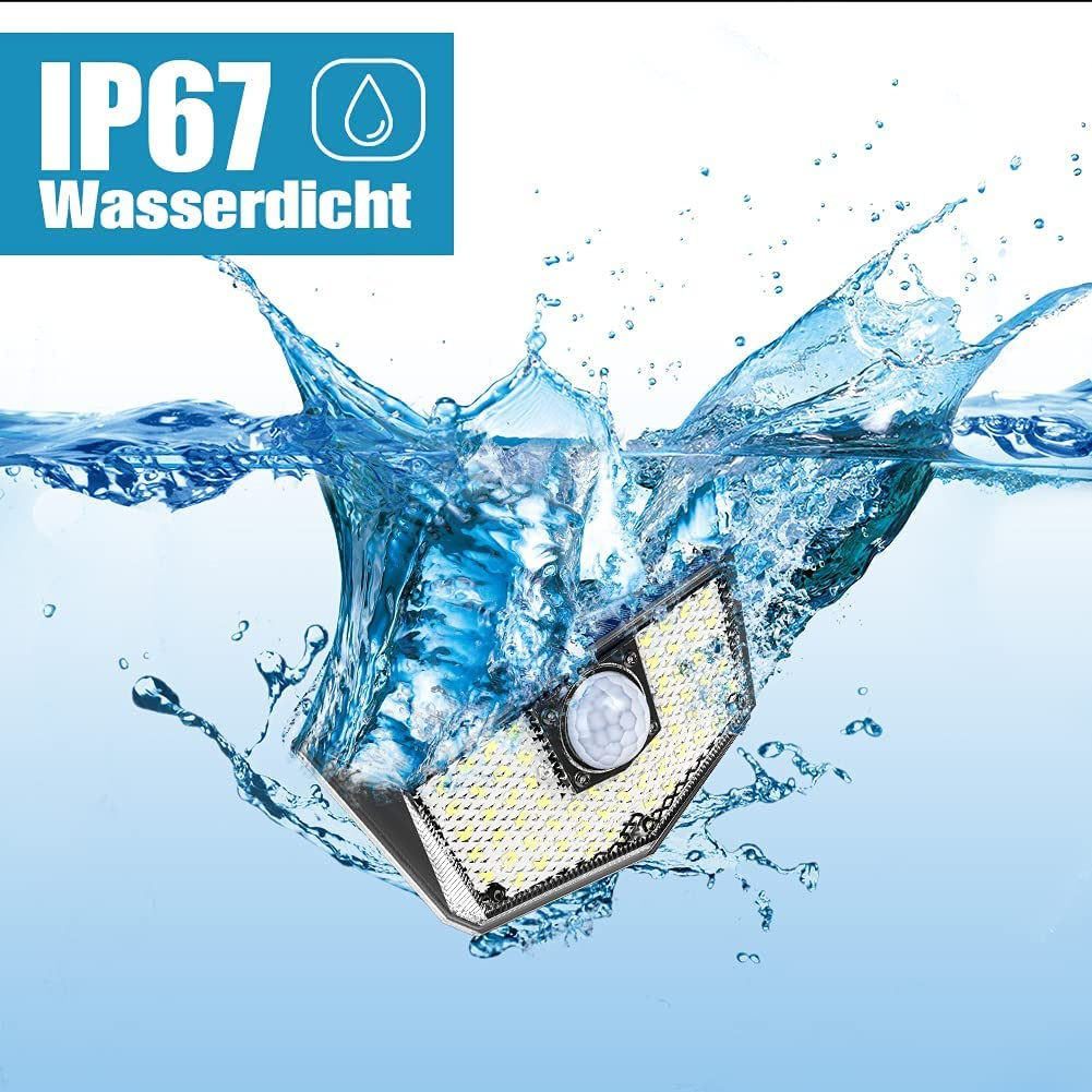 • 【Impermeabile IP67】La tecnologia impermeabile IP67 di alta qualità protegge il prodotto dai danni. Questa faretti solari a led da esterno con pannello solare è impermeabile e resistente al calore, e può essere utilizzata normalmente in condizioni meteorologiche avverse. Meglio delle altre lampade solari IP65.