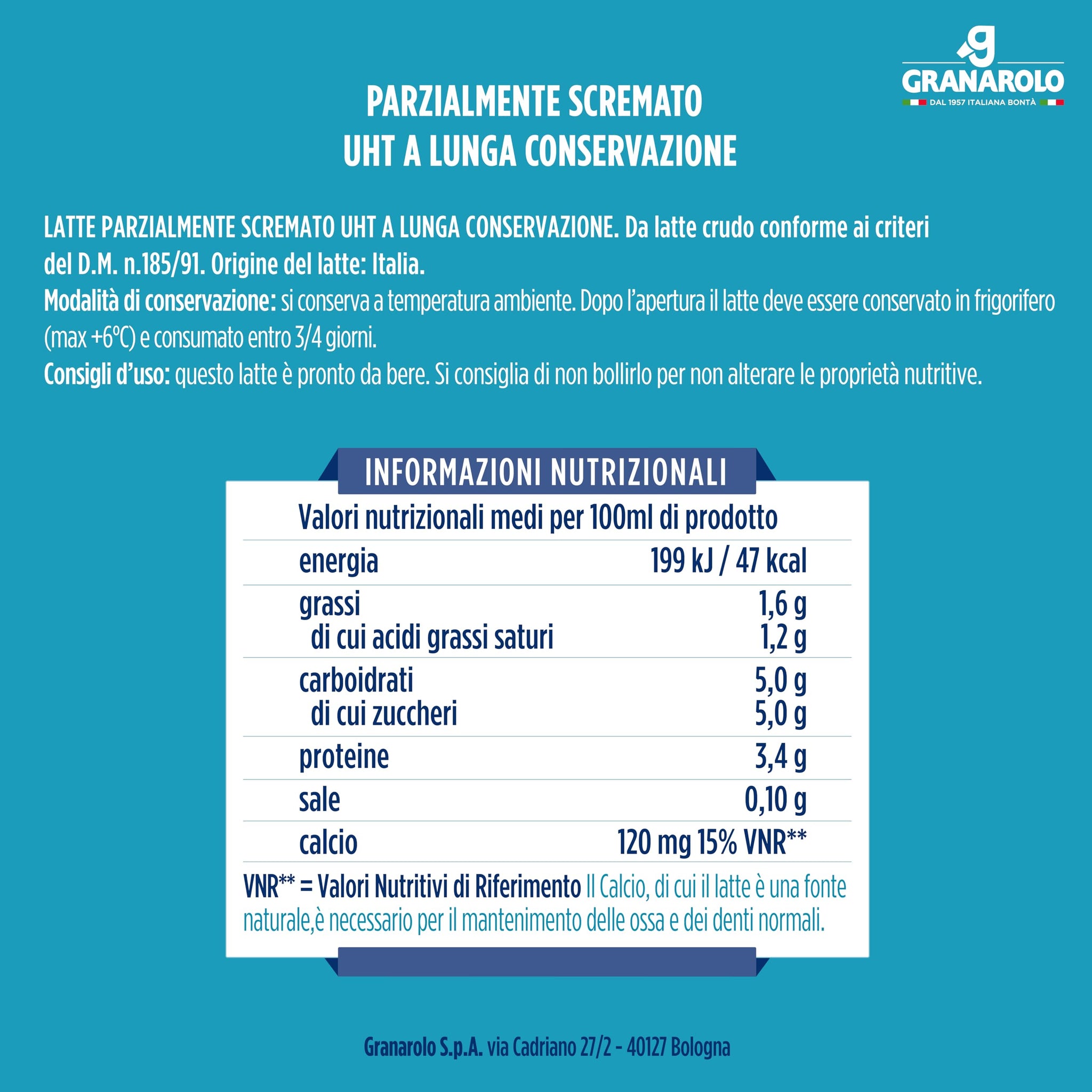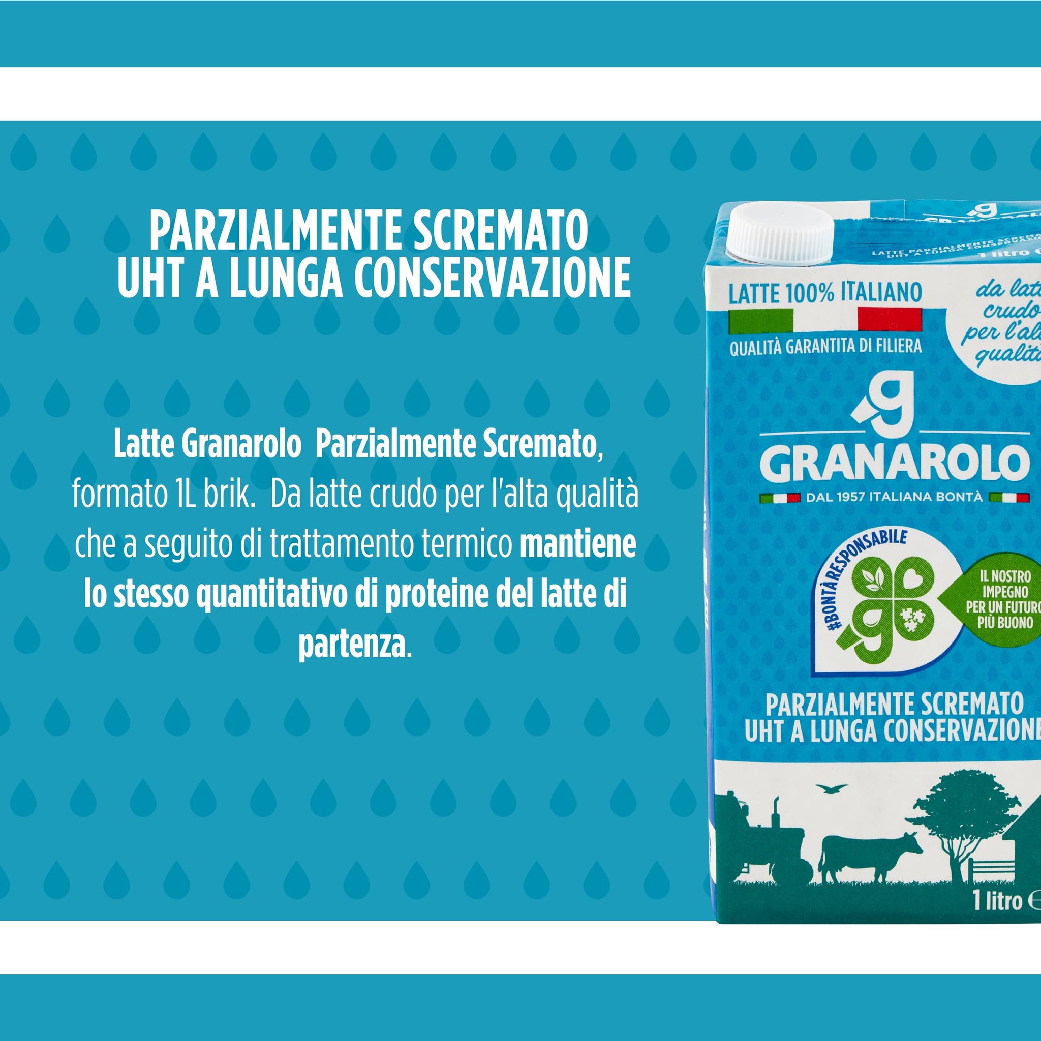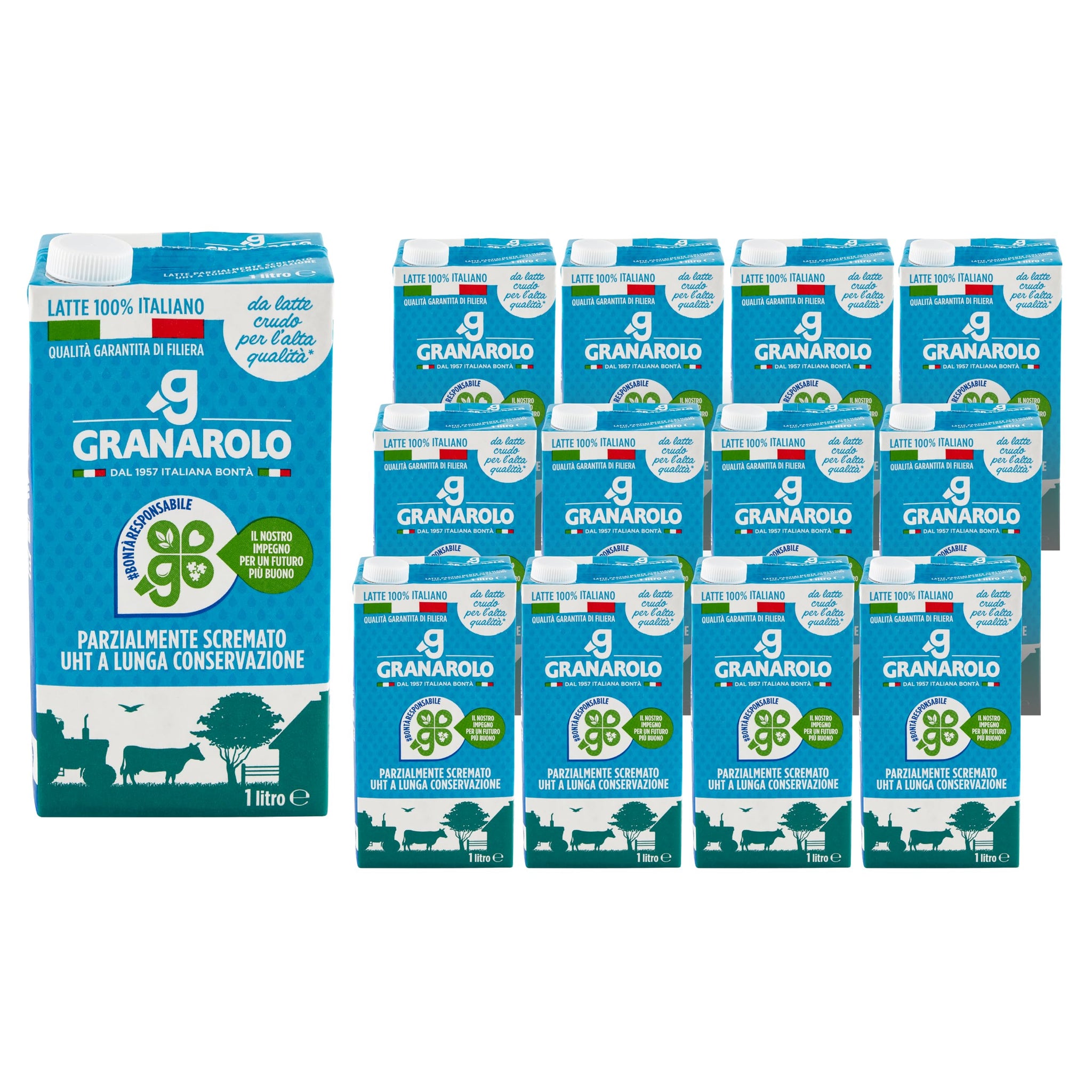 Granarolo, Latte Parzialmente Scremato UHT da Latte Crudo MID 1 lt, 12 Confezioni di Latte Italiano, Mantiene lo Stesso Quantitativo di Proteine del Latte di Partenza grazie al Trattamento Termico