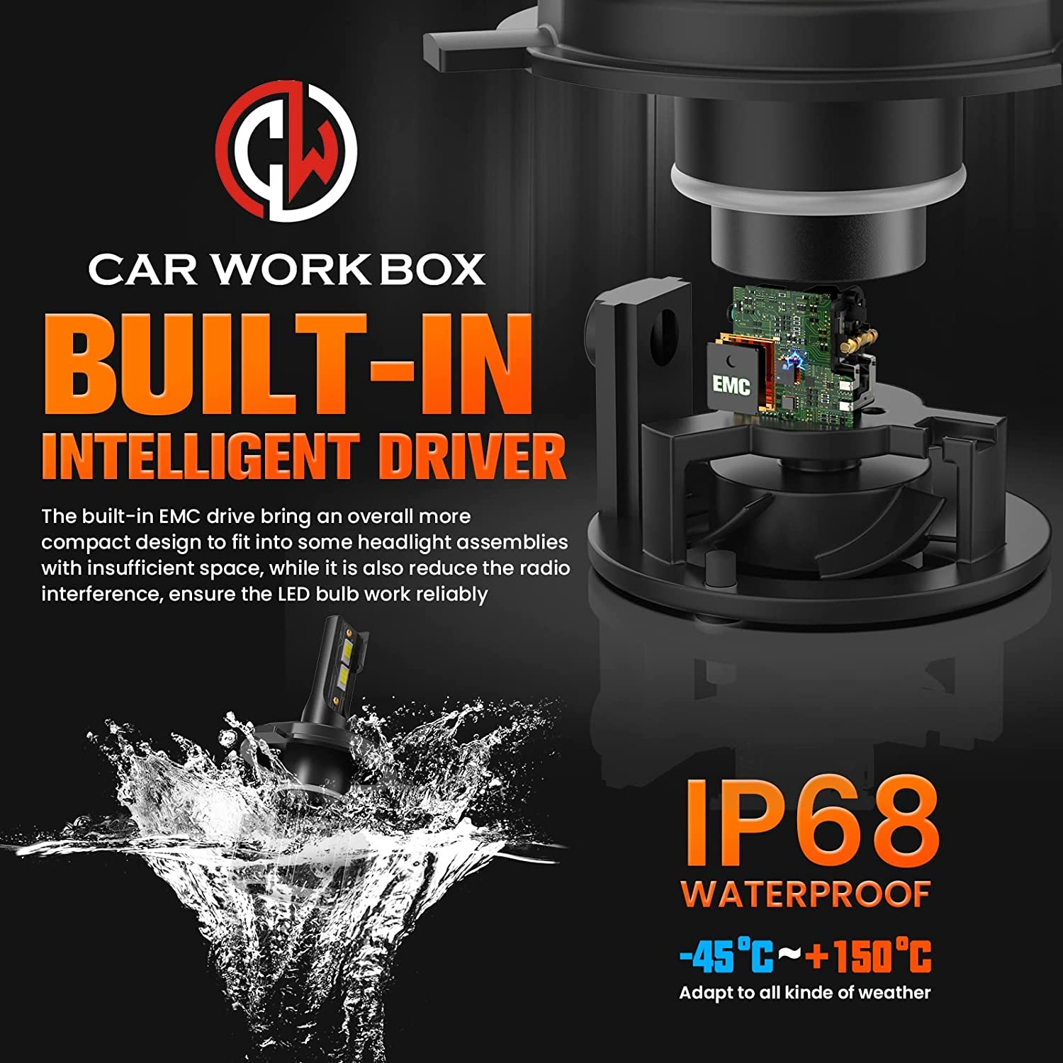 - 【300% Più Luminoso Dell'alogeno】 - Le lampadine h4 led CAR WORK BOX sono realizzate con chip LED di alta qualità da 80W, con un flusso luminoso fino a 15000LM per set, temperatura di colore 6500K. L'impermeabilità IP68 lo fa funzionare normalmente anche in situazioni estreme.