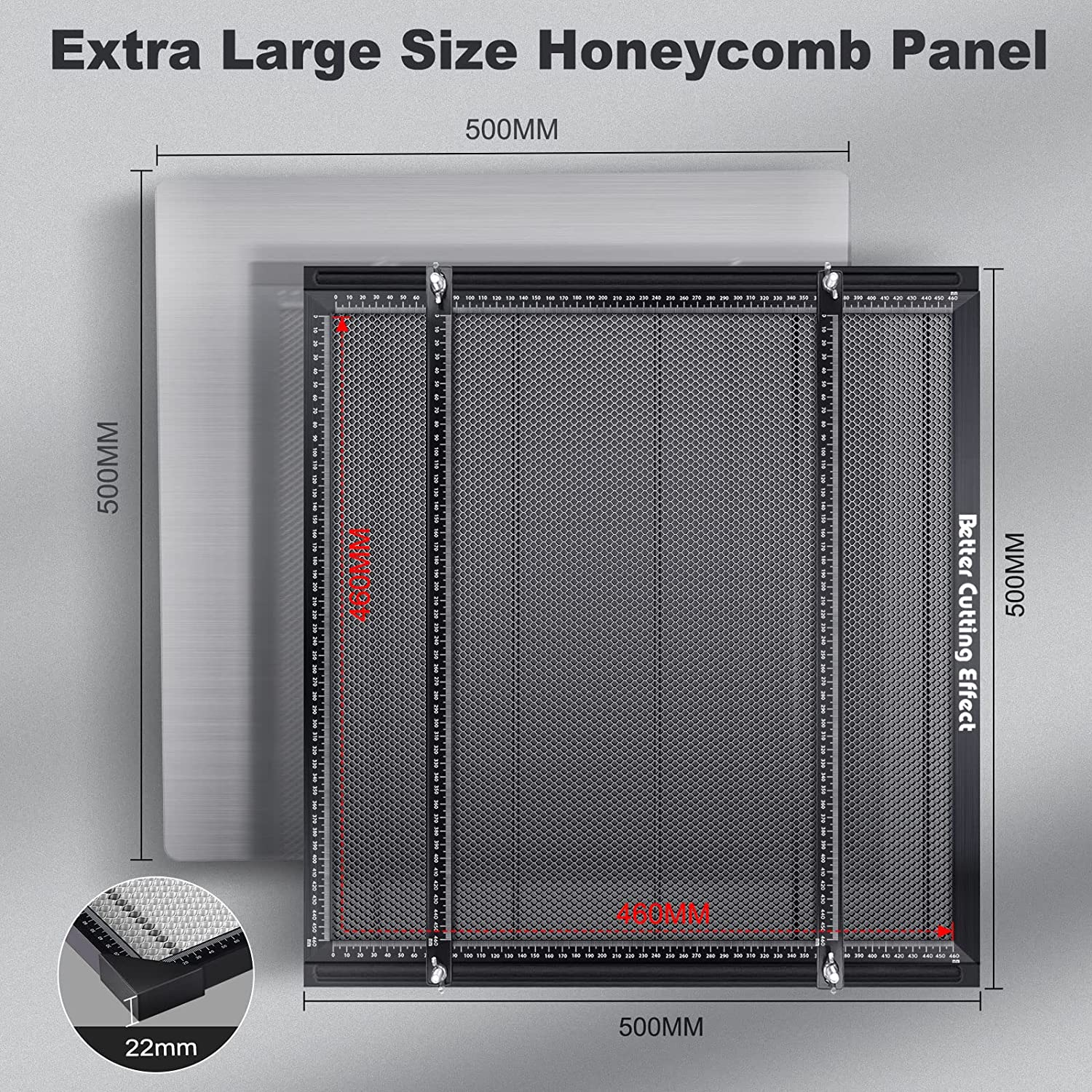 - Large Honeycomb Worktable: The size of the honeycomb worktable is 500 x 500 x 22mm. The edges of the honeycomb plate are precisely graduated, allowing you to easily measure wooden and metal objects.