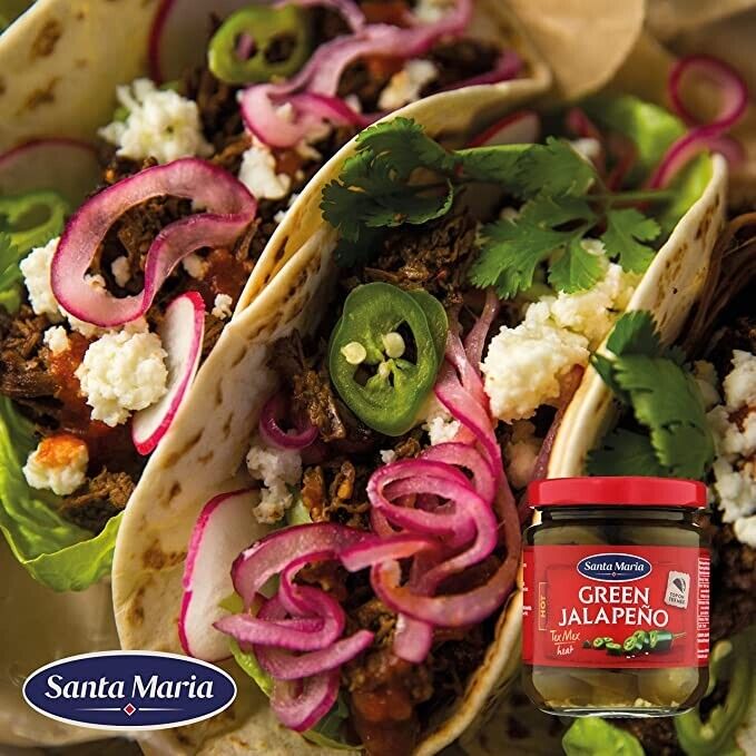 📦 CONTENU - Chez vous, vous recevrez un pot de 215 g x 4 pièces de Jalapeños rouges tranchés Santa Maria. Un paquet de poivrons rouges tranchés, idéal pour enrichir n'importe lequel de vos plats. Il ajoutera une saveur riche et épicée à n'importe quel plat et donnera à votre cuisine une touche Tex-Mex. 🌶 TEX-MEX - La cuisine Tex-Mex est la preuve que la contamination des styles et des ingrédients de deux traditions culinaires peut créer une tendance complètement nouvelle et surtout très réussie. Tex-Mex est une cuisine populaire issue d'un mélange de plats mexicains et espagnols authentiques préparés à la manière du Texas. ✅ SANTA MARIA – La marque Santa Maria, synonyme de cuisine mexicaine moderne, s'inspire de la cuisine Nuevo Latino qui combine la tradition