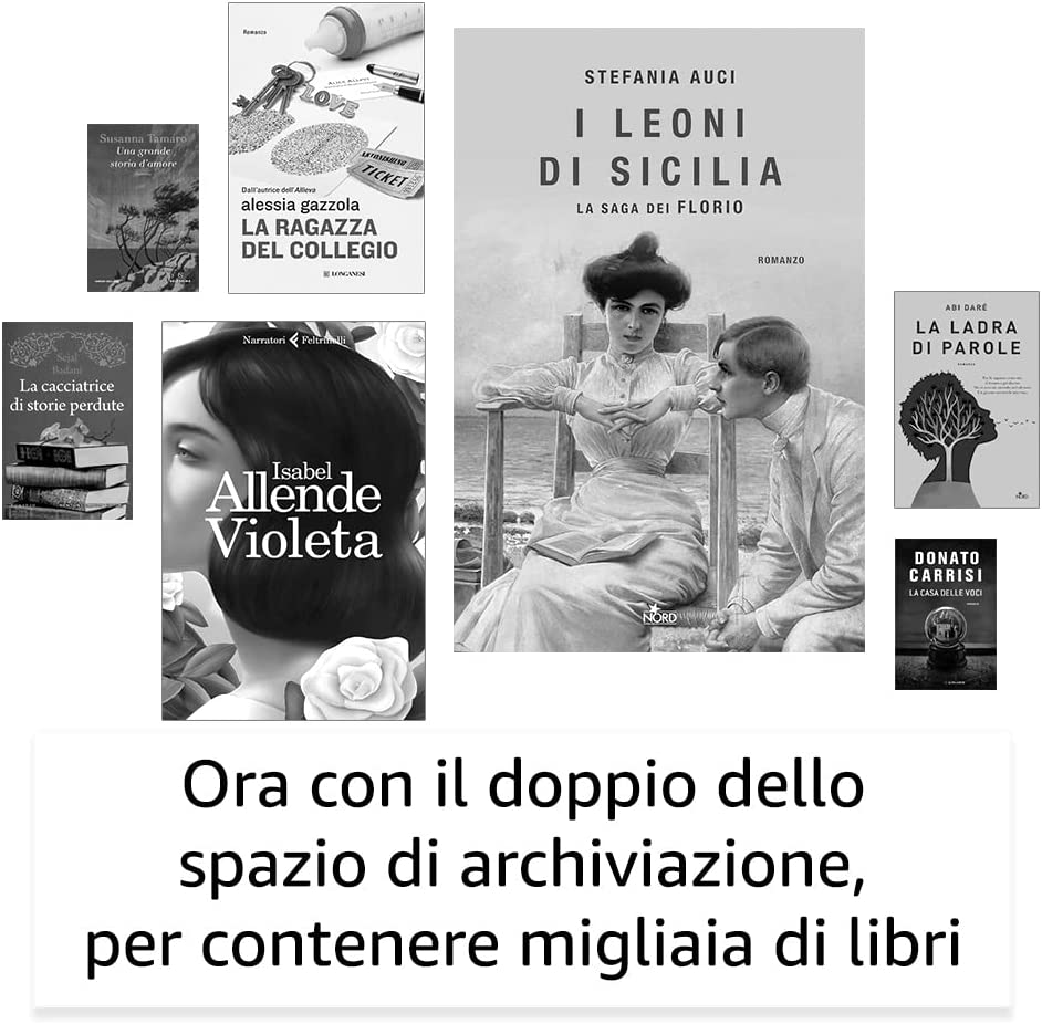 - La capacità di archiviazione è il doppio rispetto al modello della generazione precedente: puoi archiviare migliaia di libri, con 16 GB di spazio a tua disposizione.