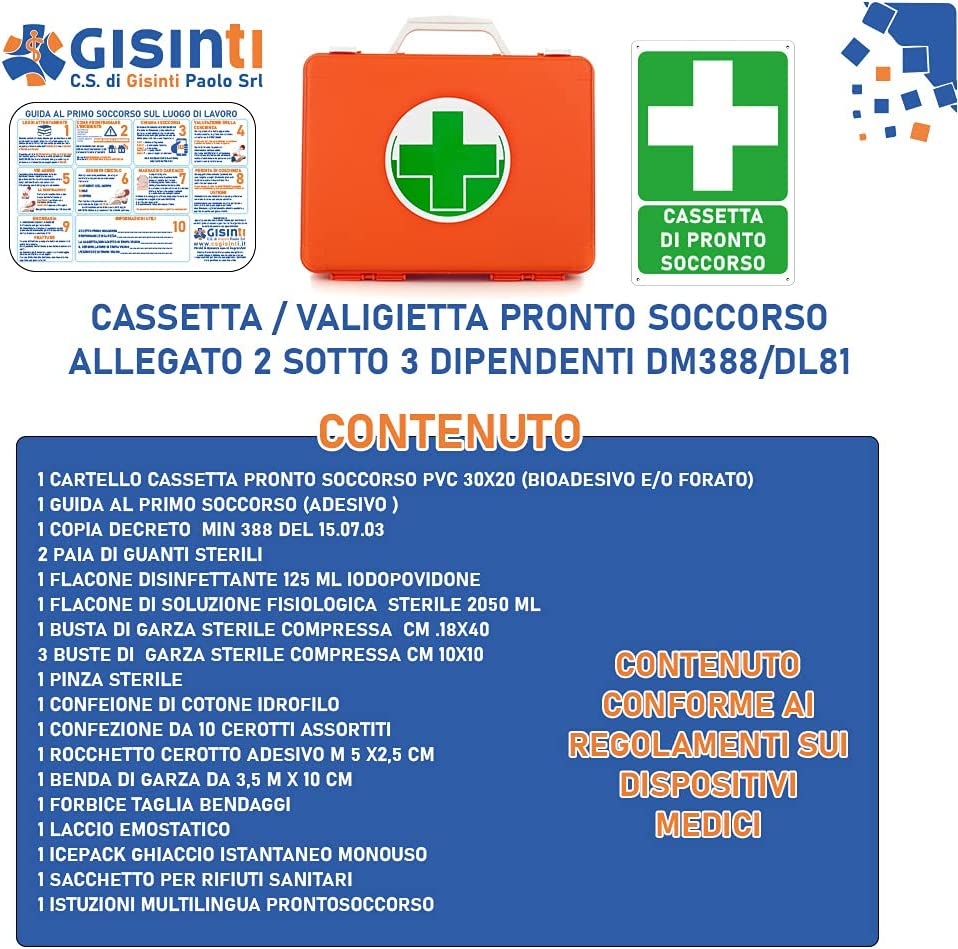 Questa Cassetta (conforme al DM388/DL81) per aziende o unità produttive con meno di 3 lavoratori che non rientrano nel gruppo A, e per lavoratori che operano nei luoghi diversi dalla sede aziendale.