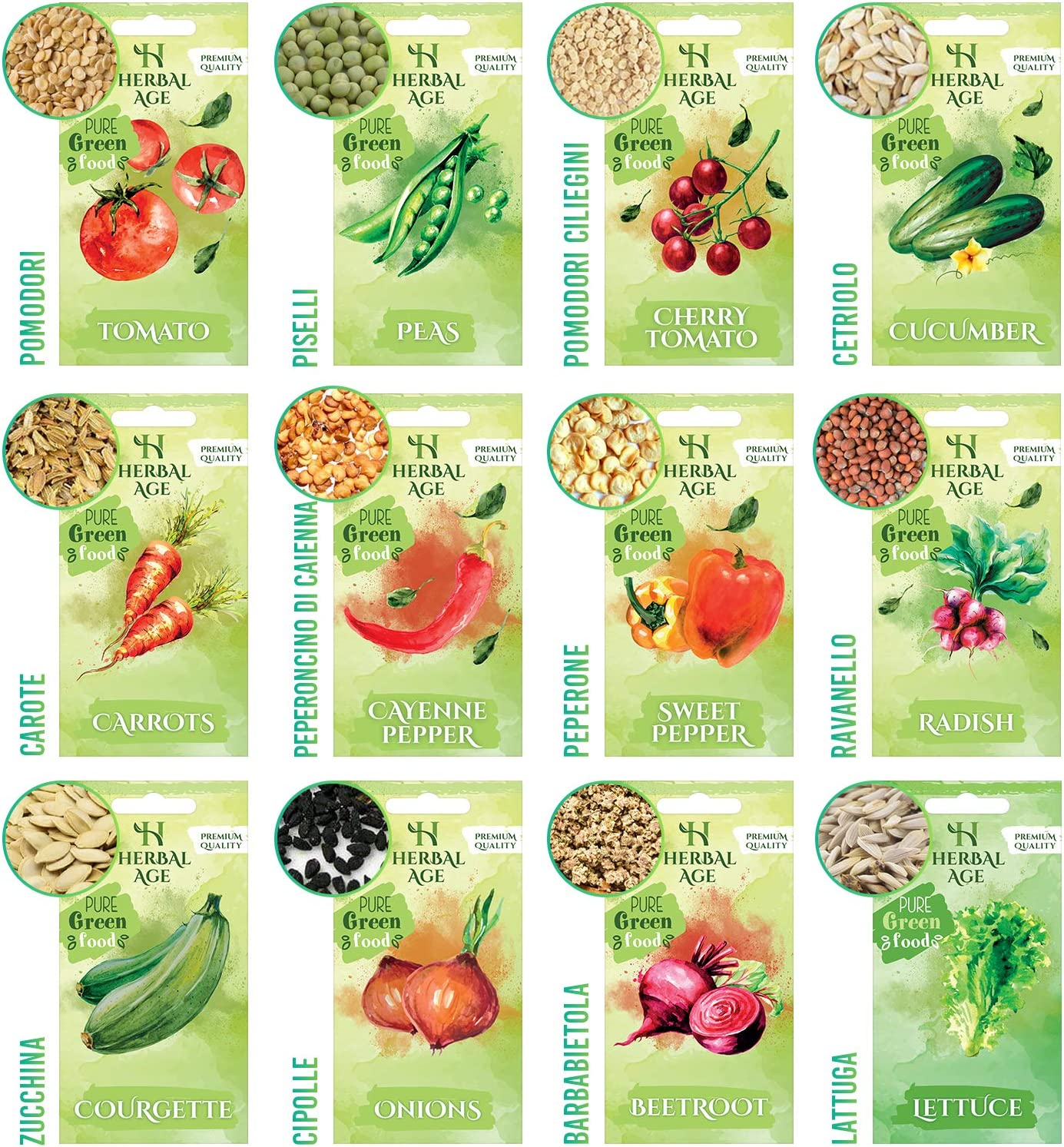 - 🌱WACHSEN SIE DAS GANZE JAHR ÜBER. Wir haben darauf geachtet, sorgfältig 12 Sorten Gemüse- und Salatsamen auszuwählen, die problemlos in der Küche, im Freien im Garten oder im Gewächshaus angebaut werden können. Es gibt eigentlich genug Samen für alles.