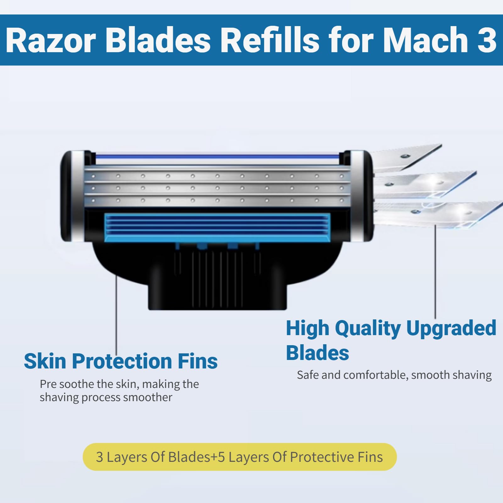 Otterrete Ricariche per lamette da rasoio da uomo adatte a tutti i manici Mach3. Abbiamo una varietà di combinazioni di 4pcs/8pcs/12pcs/16pcs/20pcs/24pcs/28pcs/32pcs/36pcs/40pcs tra cui scegliere. Adatto come regalo per padri e mariti per la festa del papà.