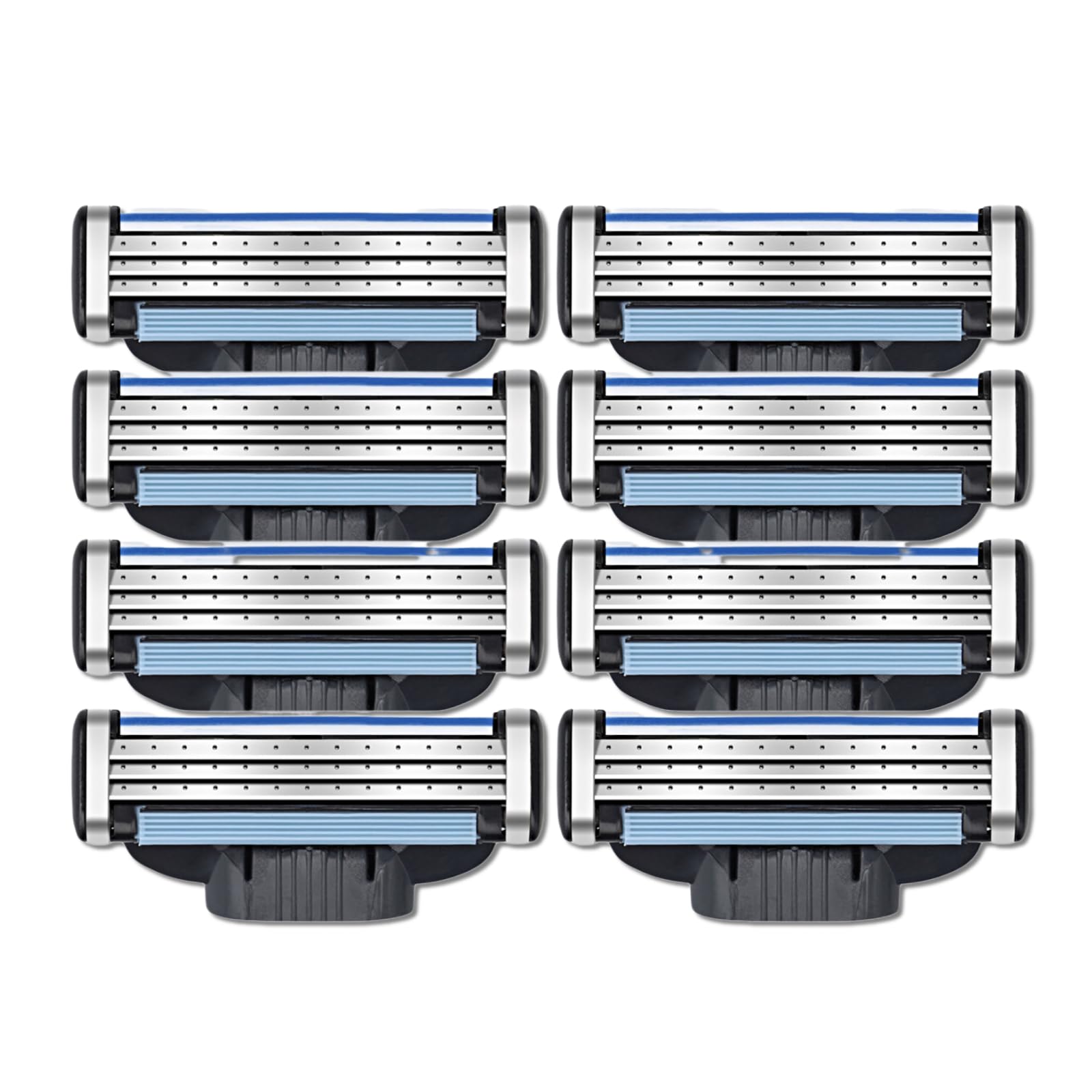Lametta Barba, Aggiornata Uomo Rasoio Lamette 3 lame per una rasatura liscia, Lamette in Acciaio, Rasoio Barba Manuale, 3 lame Acciaio di aggiornamento, Ricariche di Lame di Rasoio(8)