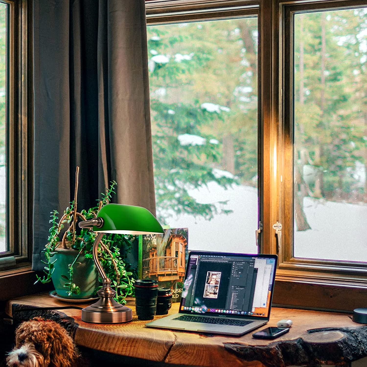 FIRVRE Lampada da scrivania classica europea tradizionale in vetro verde Bankers