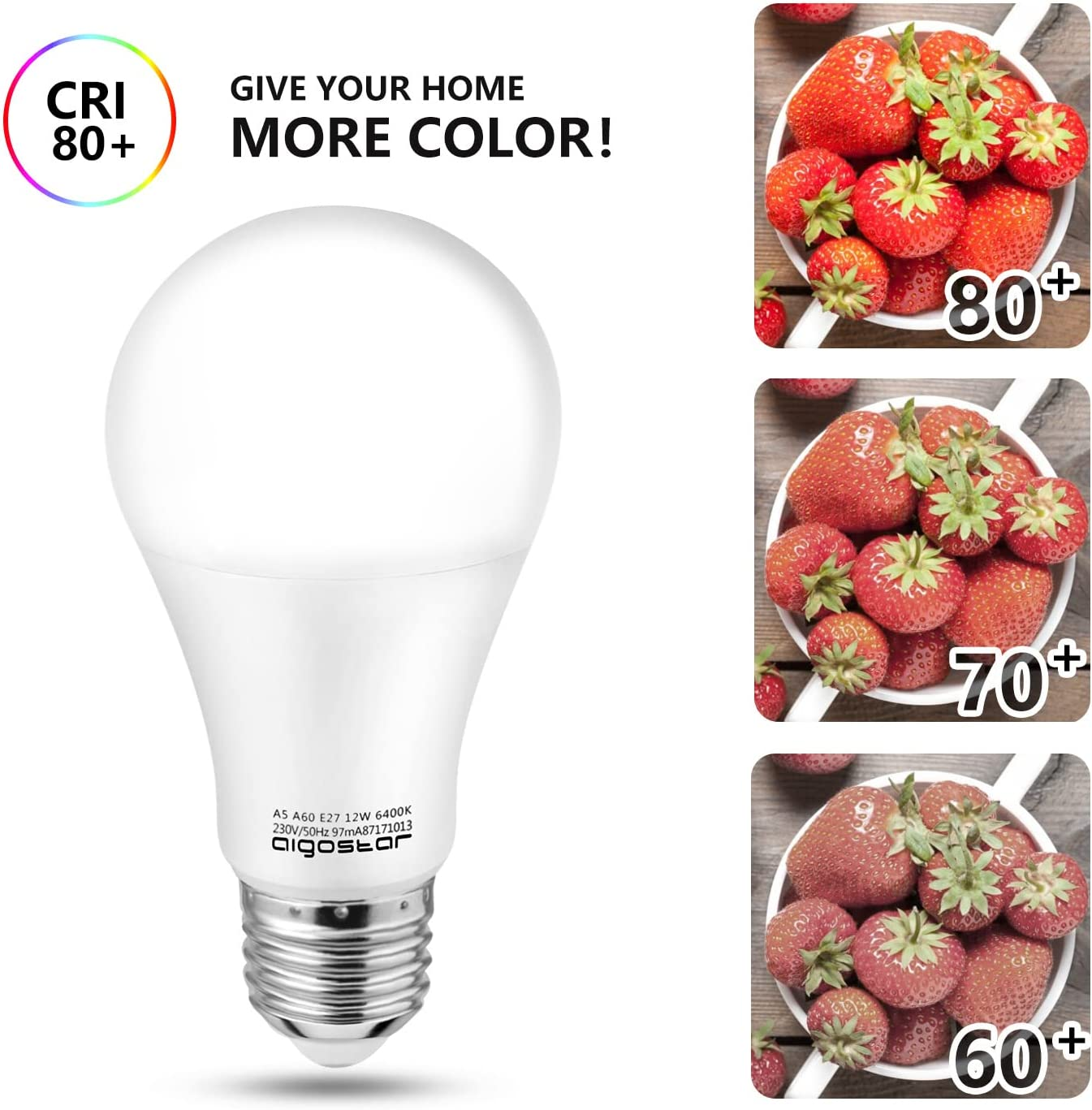 - 【Hervorragende Leistung】Der CRI der Aigostar-LED-Lampen liegt immer über 80, sodass sie Farben echt und natürlich wiedergeben. Der Lichtstrahlwinkel von 280 Grad sorgt für ein breites Lichtfeld.
