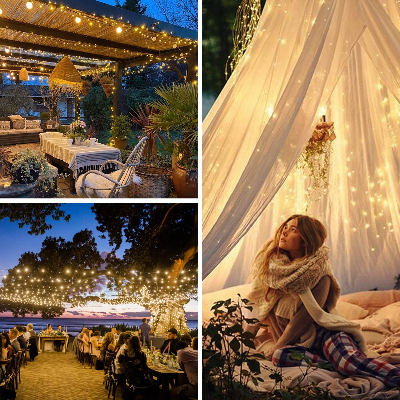 [Mehrfachanwendungsszenarien]Diese Lichterketten sind ein tolles dekoratives Accessoire zur Beleuchtung von Innen- und Außenbereichen. | [Wasserdicht]Die gesamte Saite ist wasserdicht nach IP65 und eignet sich daher perfekt für den Innen- und Außenbereich, ohne dass Sie sich Gedanken über Feuchtigkeit oder Wetterbedingungen machen müssen. | [Eine romantische Atmosphäre schaffen]Aber der Effekt ist sehr zart und süß. Viel zur Dekoration. Der flexible Kupferdraht lässt Ihrer Fantasie und Kreativität freien Lauf. |
